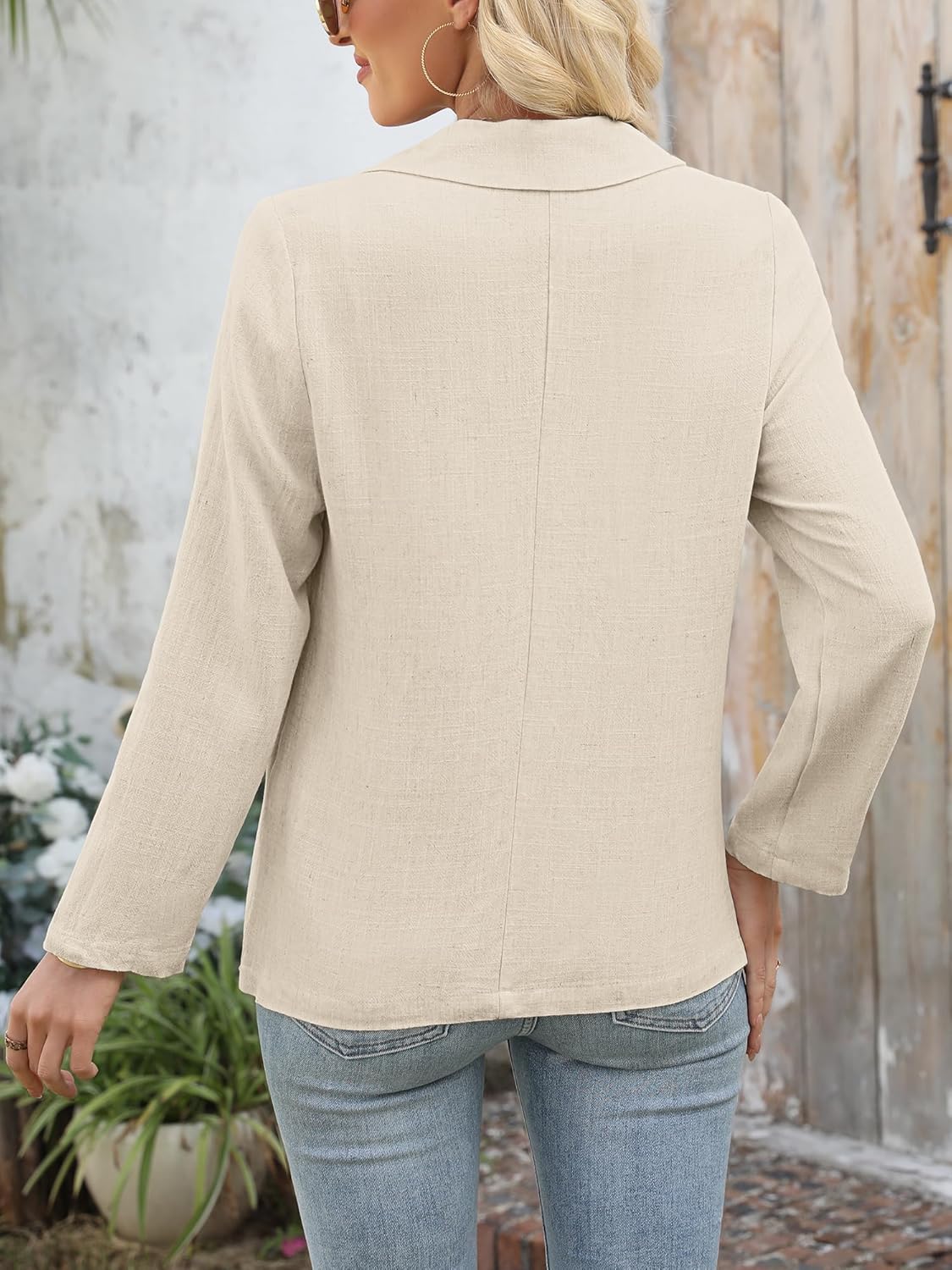 ELLEVEN Womens Linen Blazer Casual Long Sleeve Lightweight One Button Jackets Spring Summer Suit