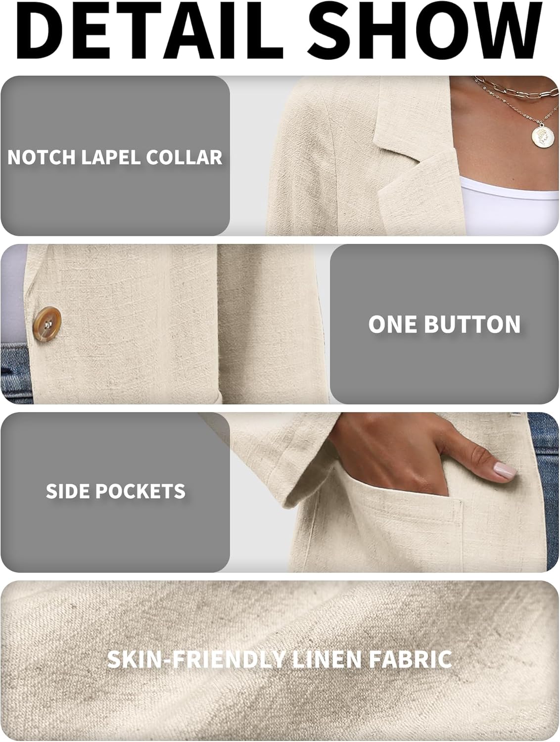 Más información para tu compra de ELLEVEN Womens Linen Blazer...