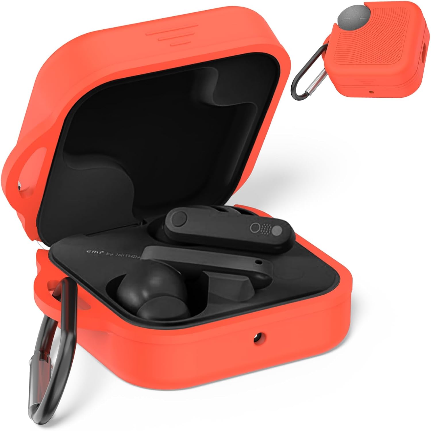 [EASY CARRY] The silicone protective case of CMF Buds Pro 2 is come with a carabiner, which can be fixed to bag or keychain.