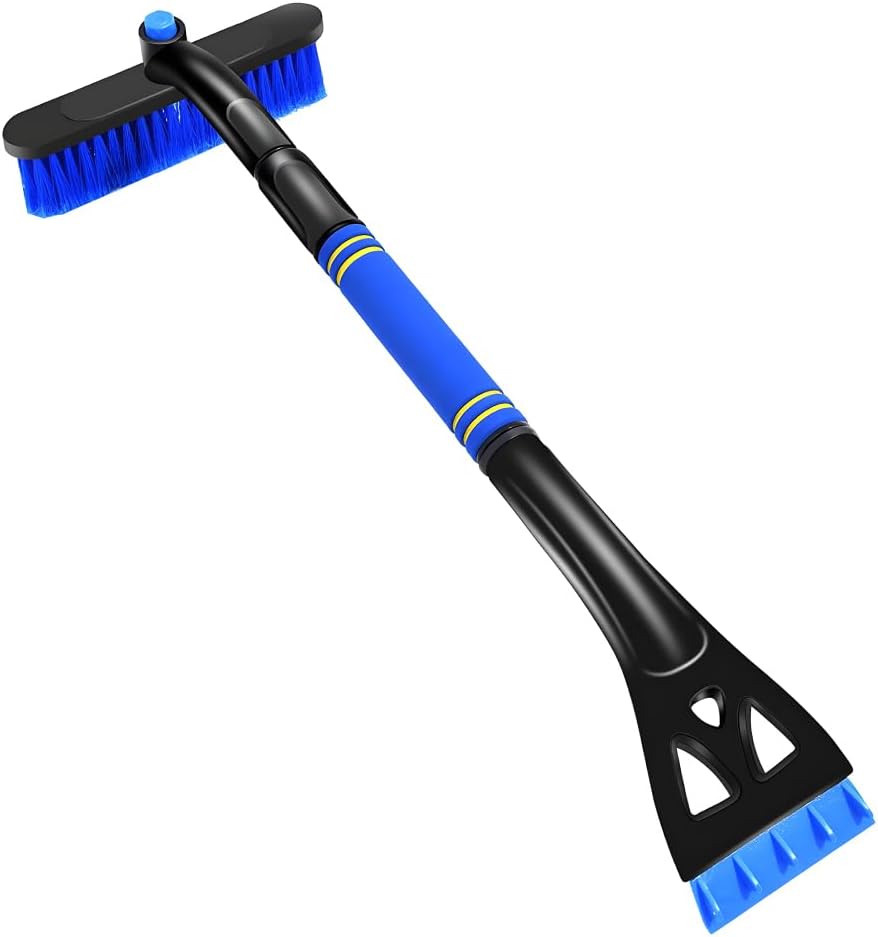 Car Snow Brush with Ice Scraper, Detachable Stretchable Snow Scraper with 360° Rotatable Brush, Automotive Multi-Functional Snow and Ice Removal Tool, Car Accessories (Blue)
