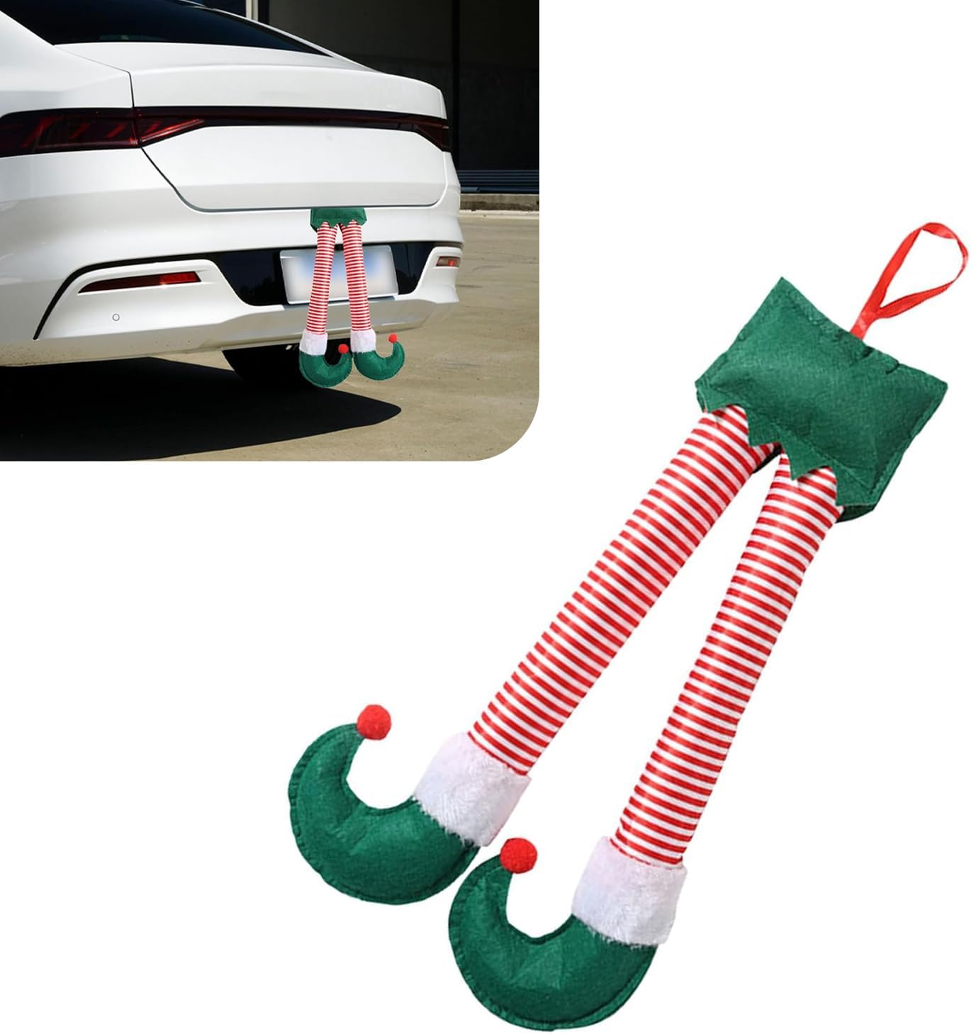 1 PC Car Santa Claus Leg Pendant, 9.84" x 19.29" Creative Personalized Christmas Holiday Atmosphere Decoration Trunk Pendant Ornaments, Modified Accessories, for Cars (Multicolored)