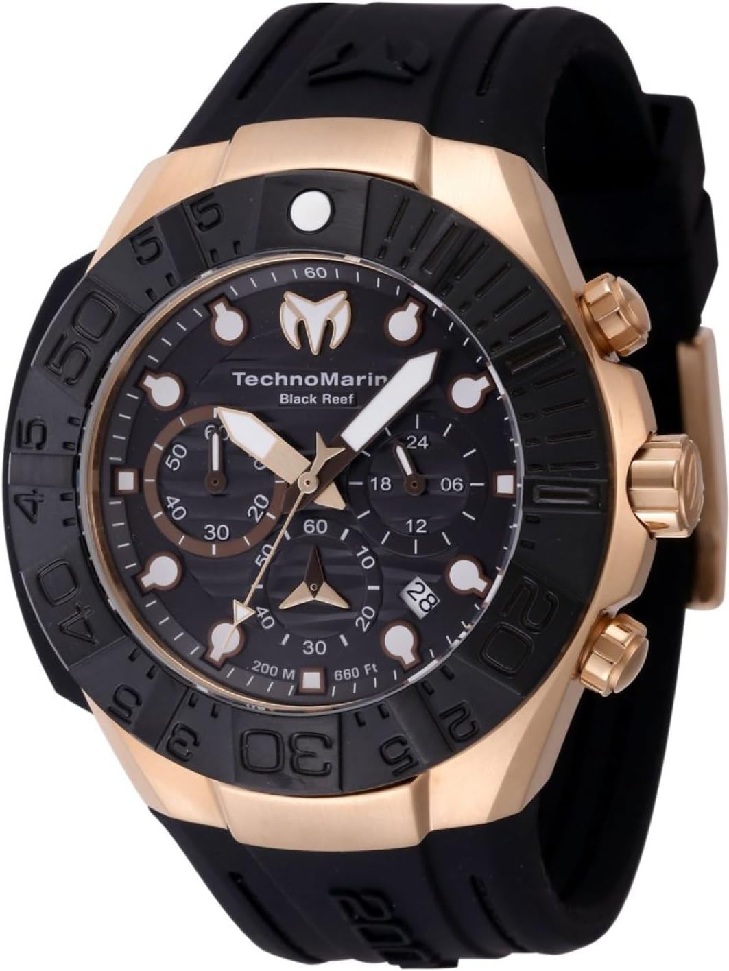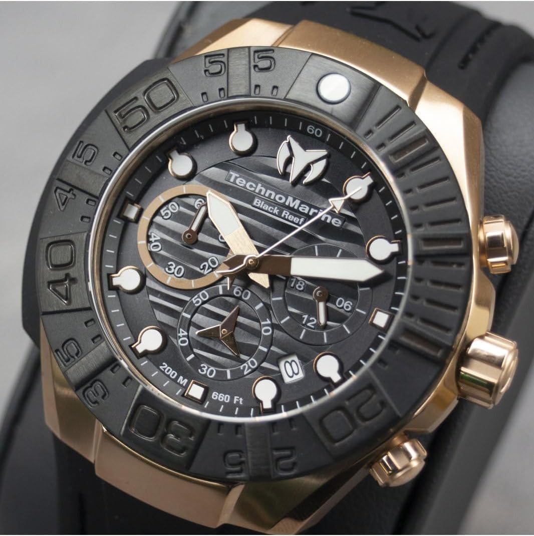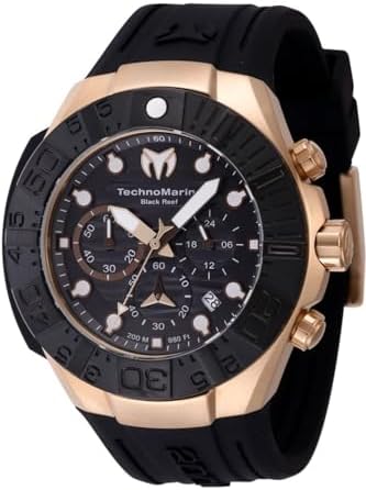 TechnoMarine TM-523011 Men's Watch, Reef Black Collection, Black Silicone Strap, Rose Gold Toned Case 45MM Chronograph