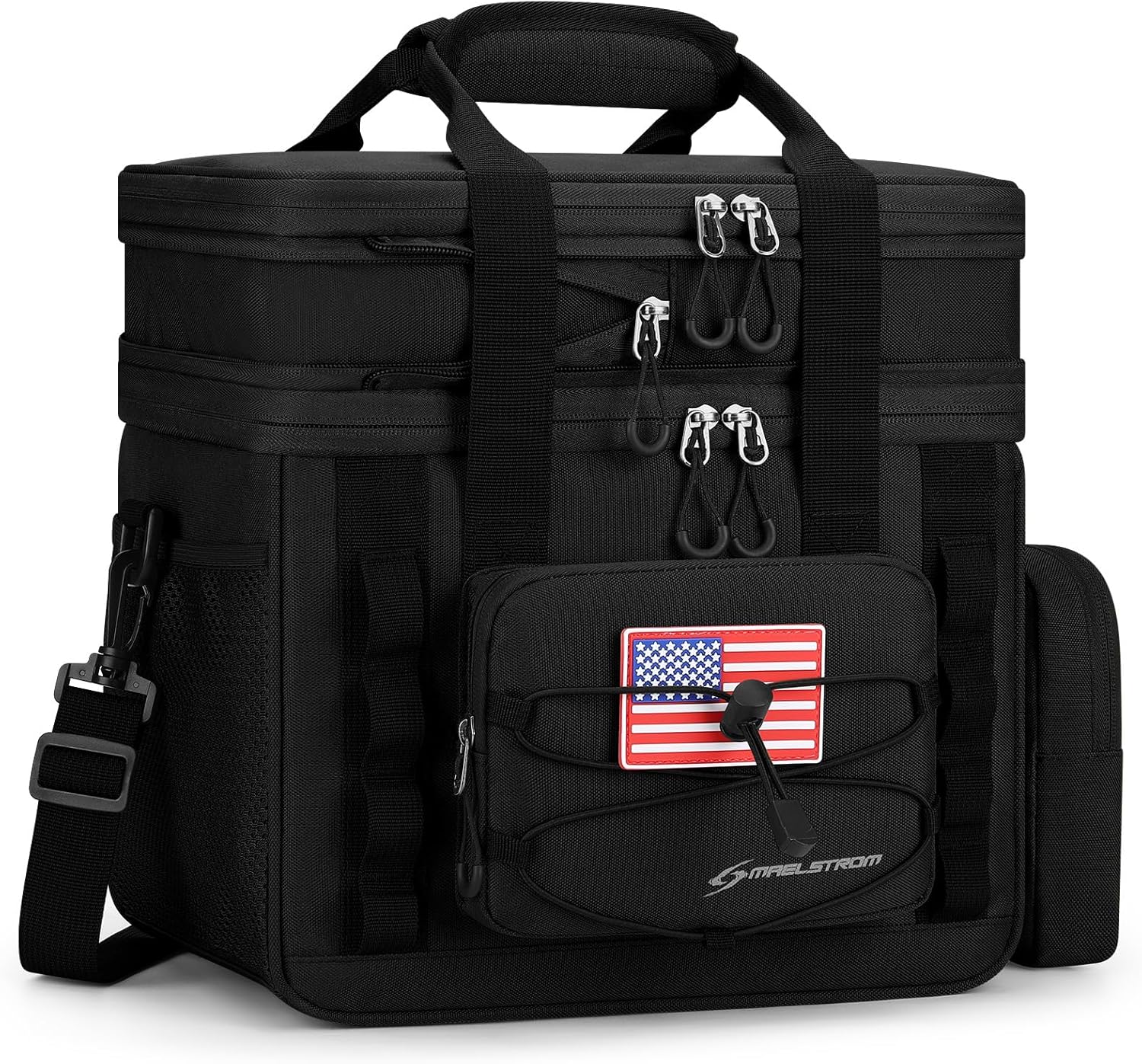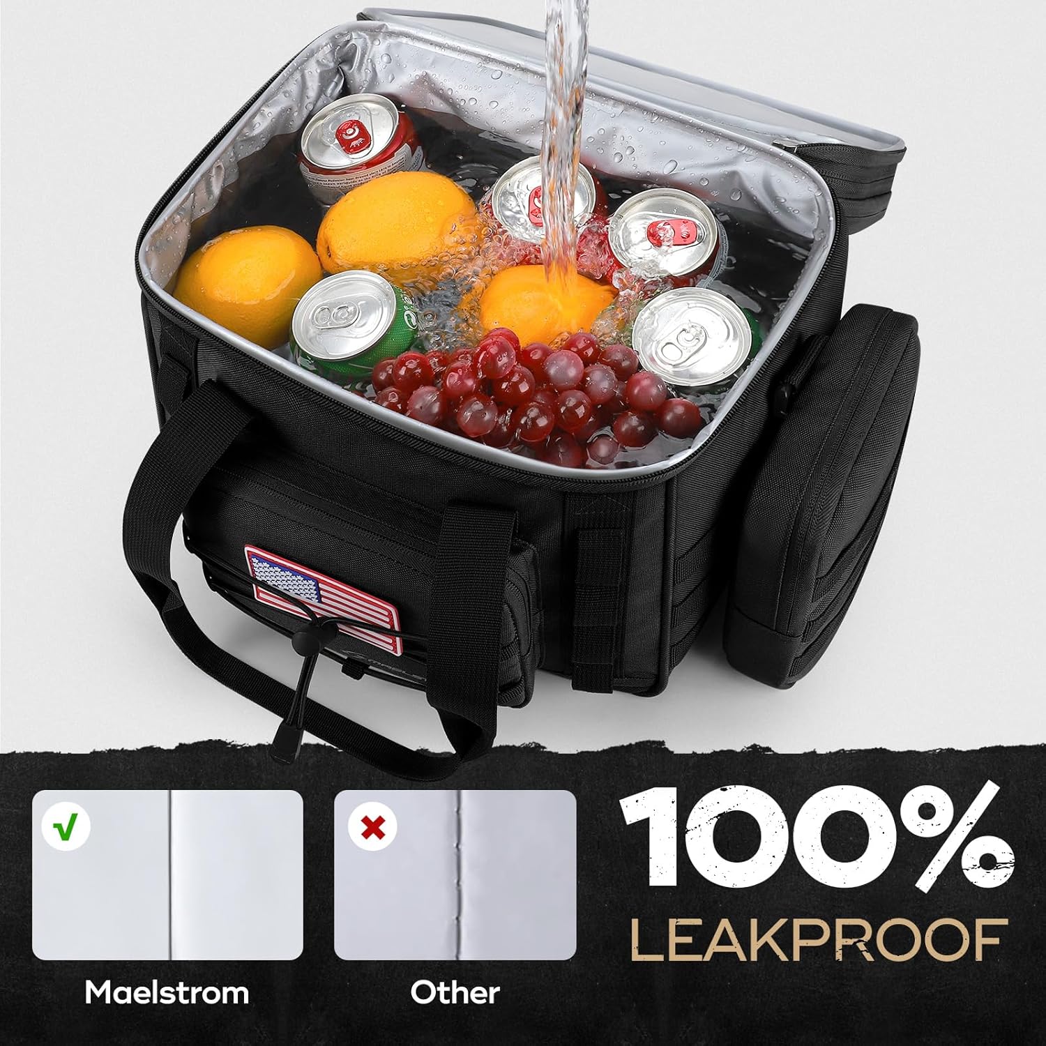 Maelstrom Tactical Lunch Box, 23 L Insulated Lunch Bag for Men, Expandable Double Deck Lunch Cooler Bag,Large Leakproof Soft Lunch Tote with Detachable MOLLE Bags, for Adult Women Work,Picnic,Black