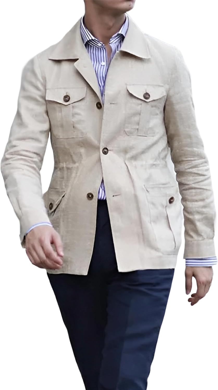 Add a touch of timeless style to your wardrobe with Men's Cotton Safari Jacket with Notch Lapel Collar, a versatile and functional outerwear option that embodies the classic British retro look. Made from high-quality cotton, this jacket is designed for comfort, durability, and a sleek appearance. Whether you're out on a casual day or exploring the outdoors, this safari jacket is the perfect blend of fashion and functionality.