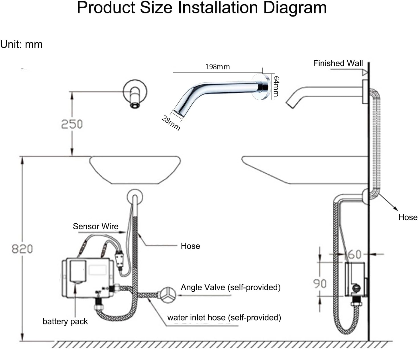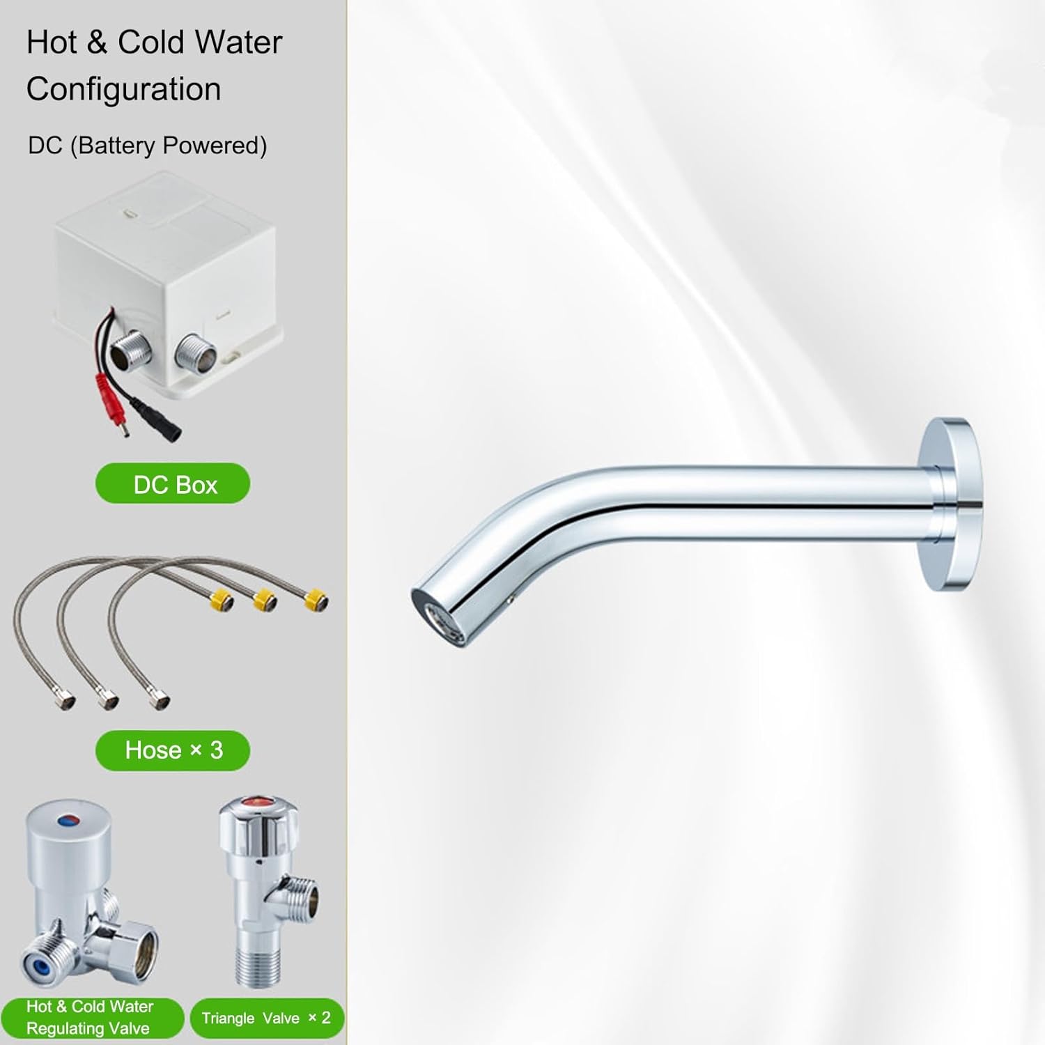 Use scene: You can choose cold water or cold water + hot water faucet, mainly used in public places such as offices, restaurants and homes, as well as various service industries and family bathrooms.Intelligent Sensor FaucetMain body material: fine copper bodyProduction process: gravity die-castingApplicable temperature: 0°-55Static power: 0.5w≤(D.C)≤3wApplicable water pressure: 0.05mpa-036mpa Sensing distance: factory Pre-adjusted 10cmPower supply: DC 6V DC (4 AA batteries)Water pipe calibre: G1/2Surface treatment: PVD plating Ideal for domestic and commercial use!‘No contact’ advantage makes it safer to useSupplies water to the user only when needed, thus reducing wasted water and associated costs.Great gift idea for Valentine's Day, weddings, Father's Day and Mother's Day. Useful gifts are usually more memorable than ordinary ones.Freedom to choose fittings as neededIf you encounter difficulties during the installation process, please do not hesitate to contact us, we will help you within 24 hours!