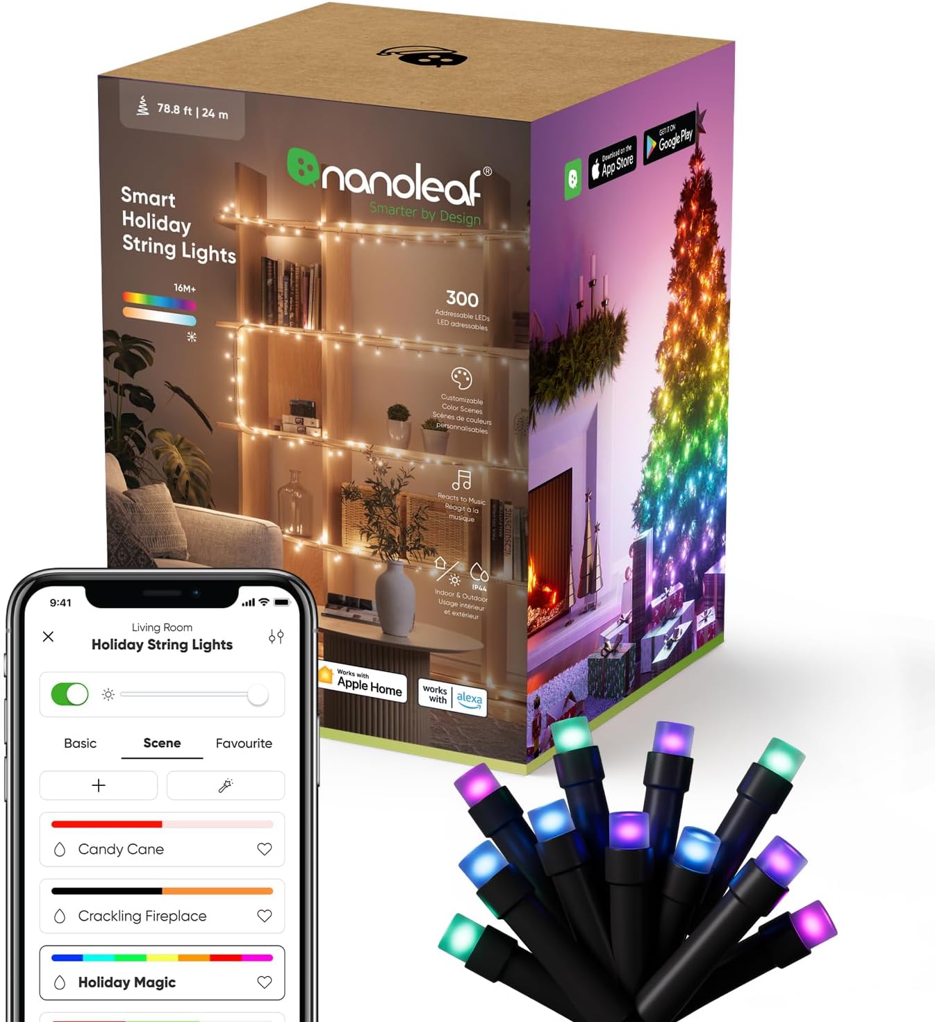 Nanoleaf Smart String Lights, 300 LED RGBW Indoor Christmas Lights, Matter Bluetooth & WiFi Multicolor LED Lights, App & Voice Control, Works with Apple Home, Google Home