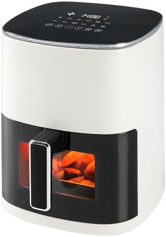 OLIXIS Air Fryer 6 Quart with Window Square Air Fryer 12-in-1 Air Fry, Roast, Reheat, Dehydrate, Bake, Steam, Fries, Custard, Chicken, Wings, Sea Food, Vegetabels,400F Beige
