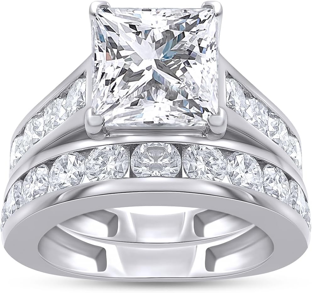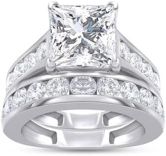 Celebrate your love with this stunning Bridal Ring Set featuring a captivating Center Princess Cut Moissanite and elegant Round Moissanite accents. Crafted in 14k gold-plated sterling silver, available in white, rose, and yellow gold colors, this exquisite wedding and engagement ring set offers timeless beauty and brilliance. Ranging from 3 to 6 carats with VVS1 clarity, it’s the perfect symbol of your special bond. A perfect choice for women seeking luxury and elegance at an affordable price.