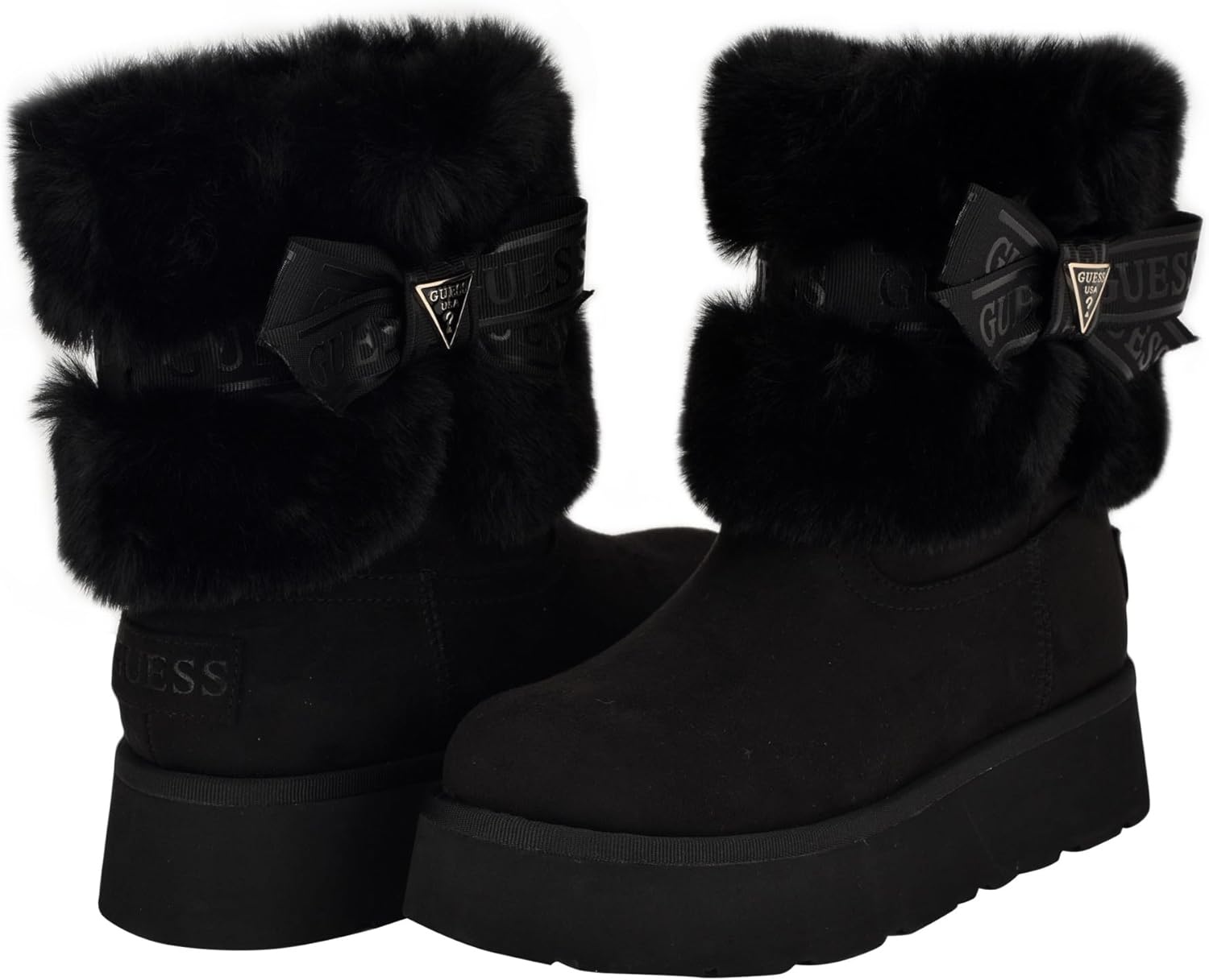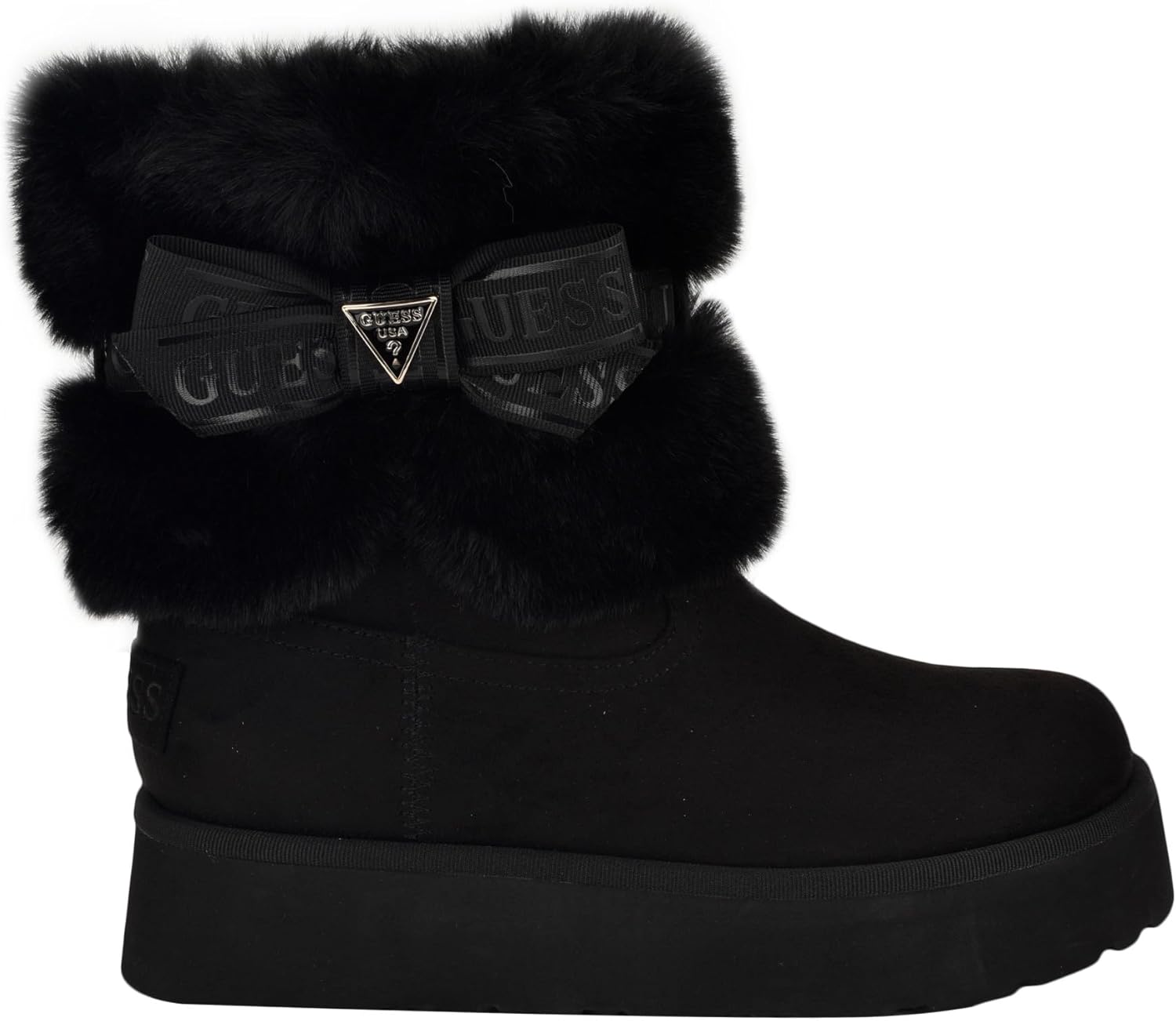 The Denla is a light weight, ankle winter boot with plush texture on the ankle and beautiful Guess Logo detailing on the side bow ribbon. Faux suede material and a comfortable cushioned footbed makes it great for everyday wear and cold winter days and nights