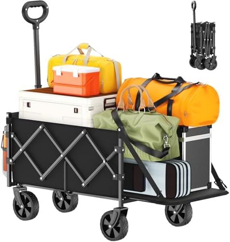 Foldable Wagon with Extended Tailgate: Collapsible Large Capacity Folding Wagon - Heavy Duty Utility Carts for Shopping,Garden,Sports,Groceries,Apartment,Camping,Outdoor - Black