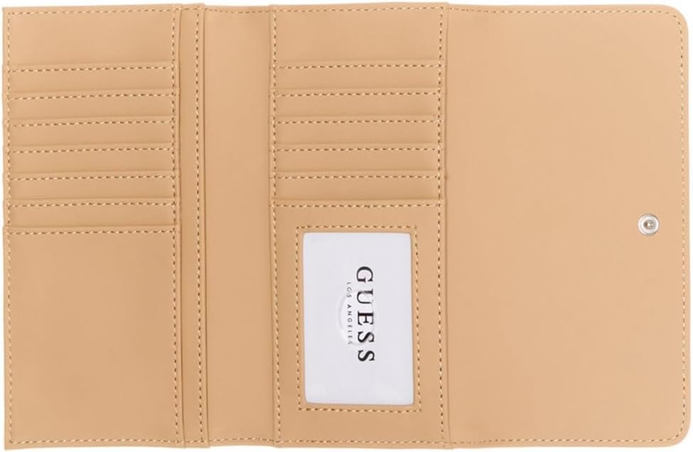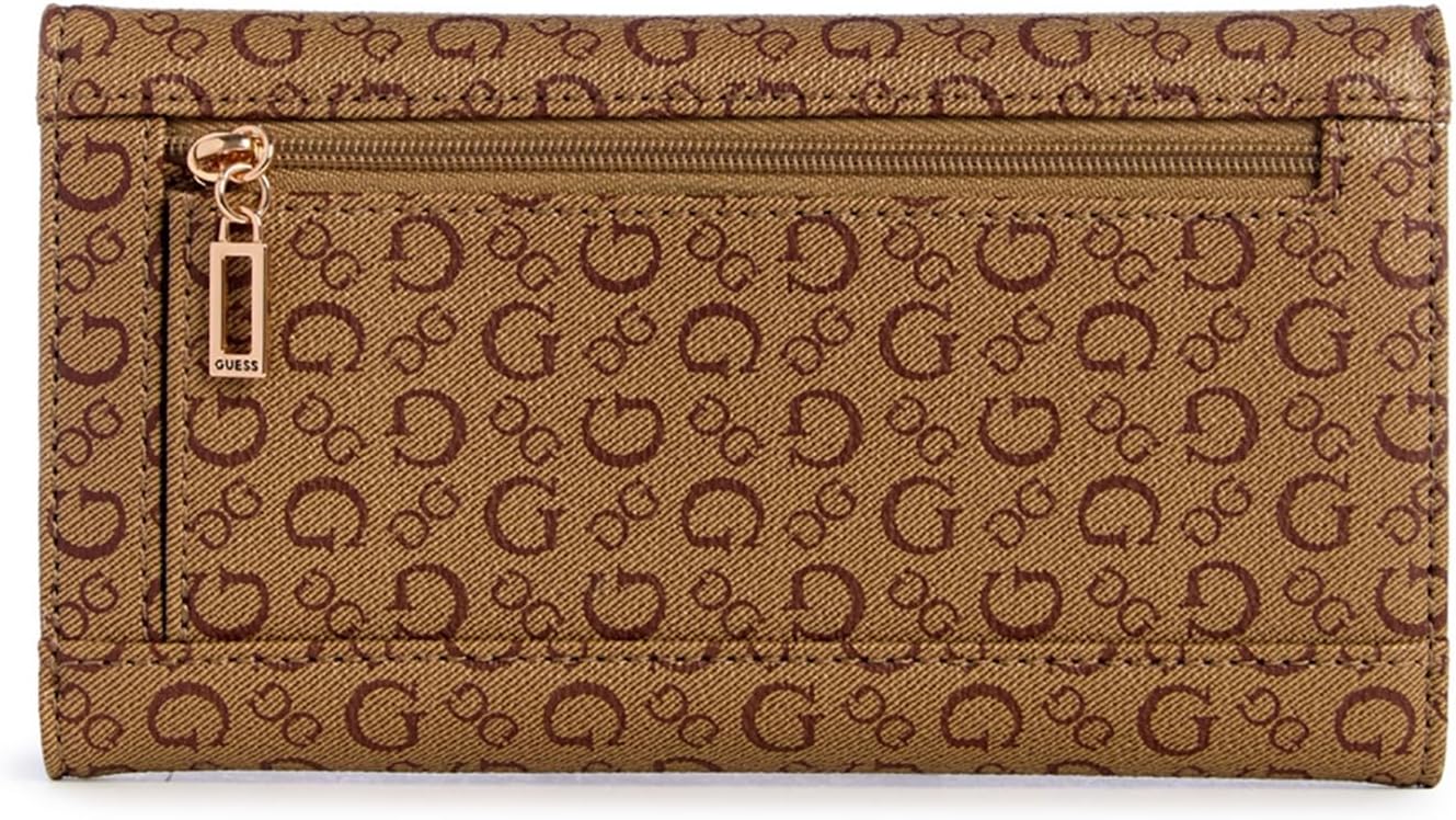 Leather-like coated canvas slim clutch wallet - Allover logo print - Gold-tone hardware and logo emblem - Trifold construction - Snap-button closure - 12 card slots - 3 bill pockets - 1 ID window - 7"W x 4"H x 1"D