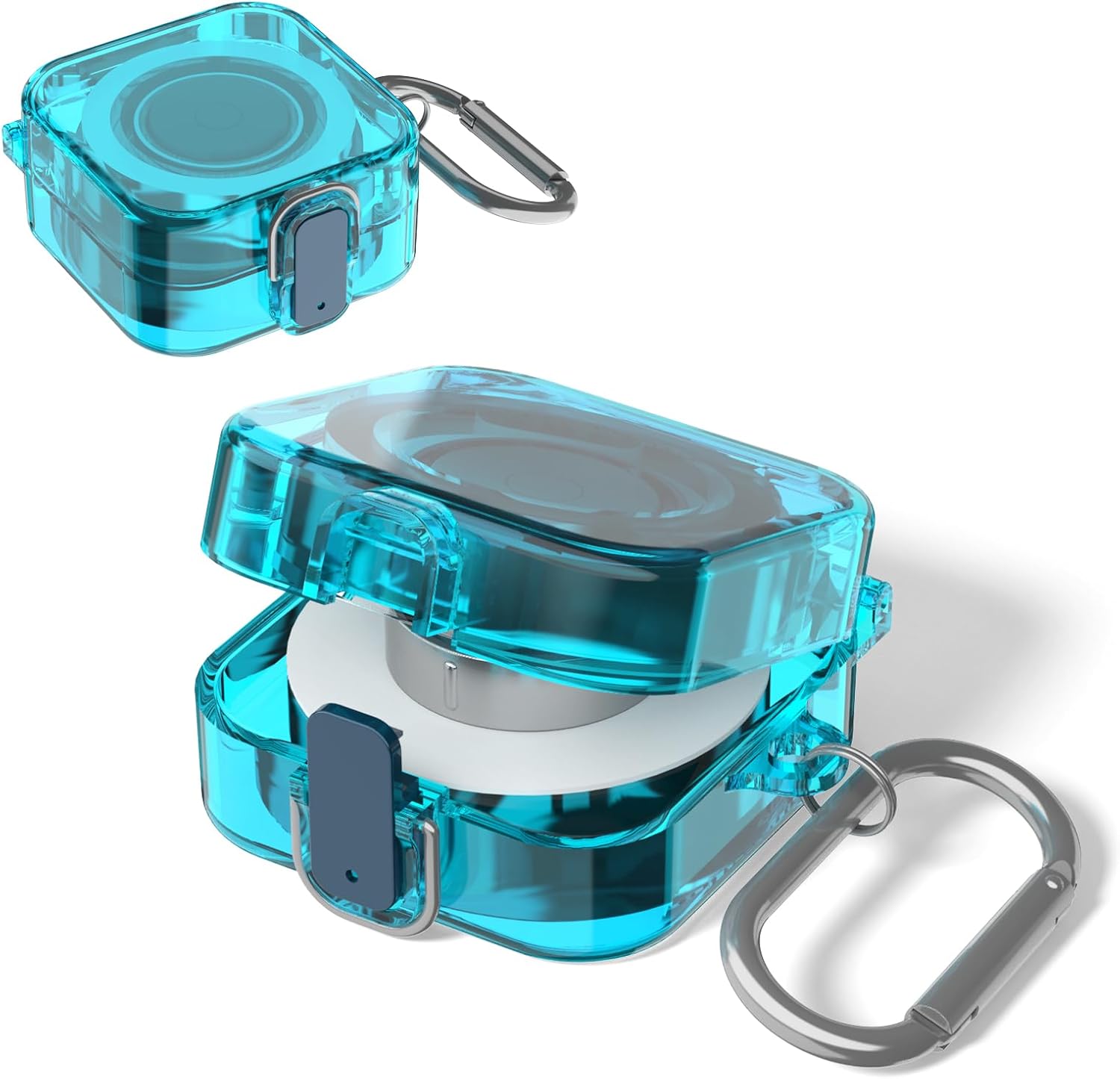 Charger Protector Cover for Samsung Galaxy Ring Charger with Carabiner, Slim Flexible Full Protection TPU Protective Case Cover Compatible with Samsung Galaxy Ring Charging Case (Clear Blue)