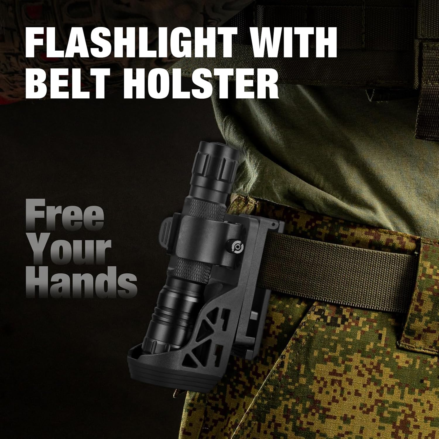 MULTI-FUNCTION BELT HOLDER: UltraFire W66 flashlight holster is made of engineering plastics. Lightweight and convenient to carry. The holster can be rotated 360° and the flashlight can be fixed on belts, truly freeing your hands.