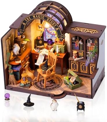 【Rolife's New Creation】This miniature house kit combines mystery and fantasy, complete with a messenger owl, time-reversing crystal ball, and secret-unraveling book. Become a wizard and enjoy the joy of assembling this magical abode. Let your imagination run wild in this delightful adventure.