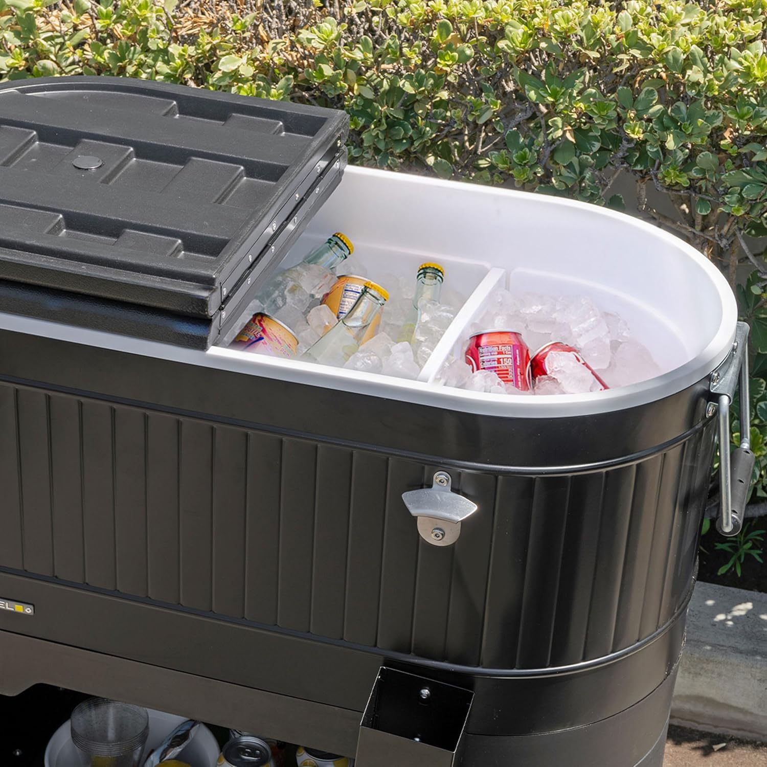 Extended Cooling Power: Keep the party going with drinks chilled for up to 36 hours. Featuring a charming farmhouse style, this Permasteel cooler on wheels combines functionality with a touch of elegance, enhancing any outdoor setting.