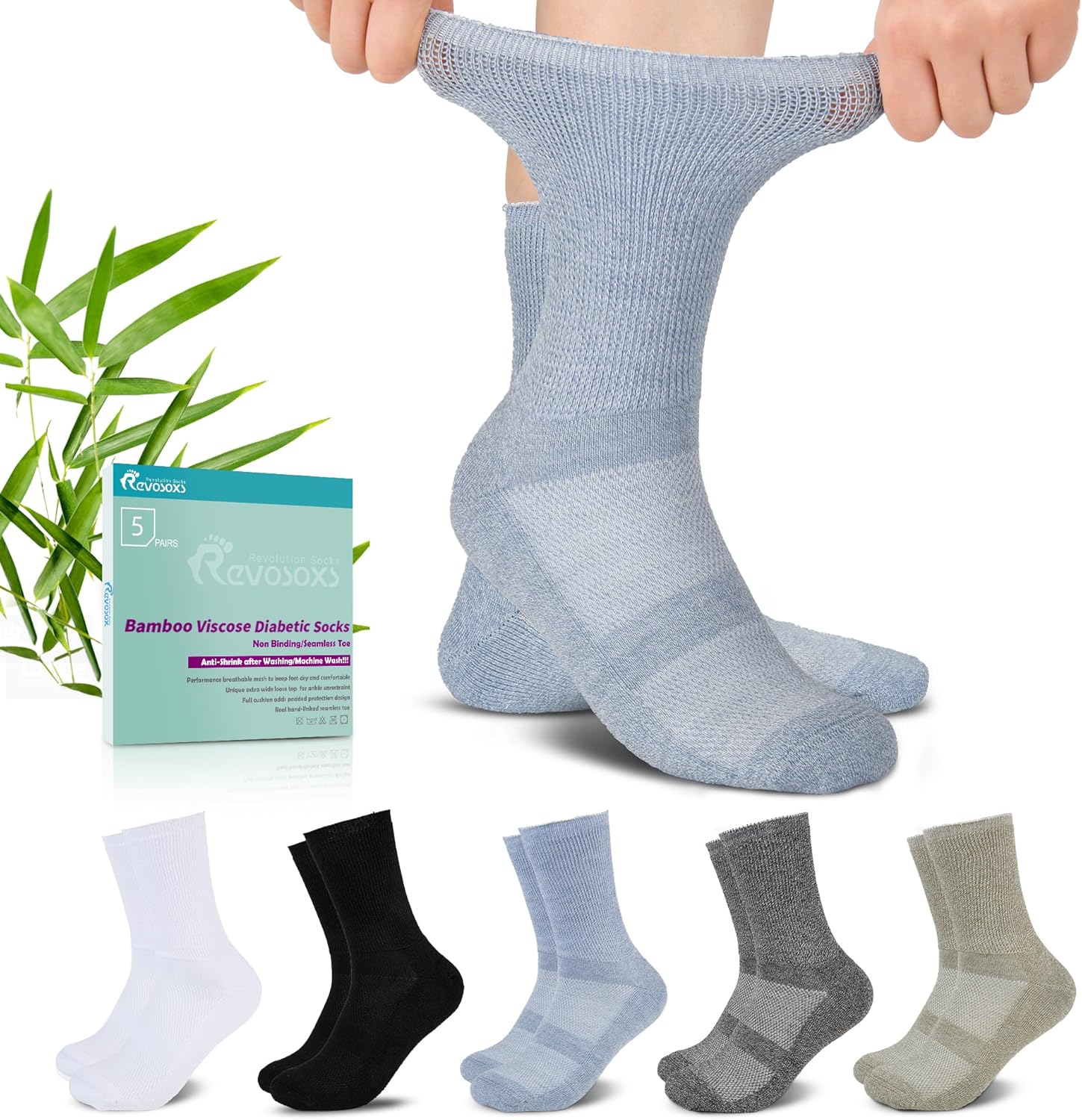 Diabetic Crew Socks for Men Women,Bamboo Viscose Non-Binding Loose Top Wide Socks with Seamless Toe 6-9 9-12
