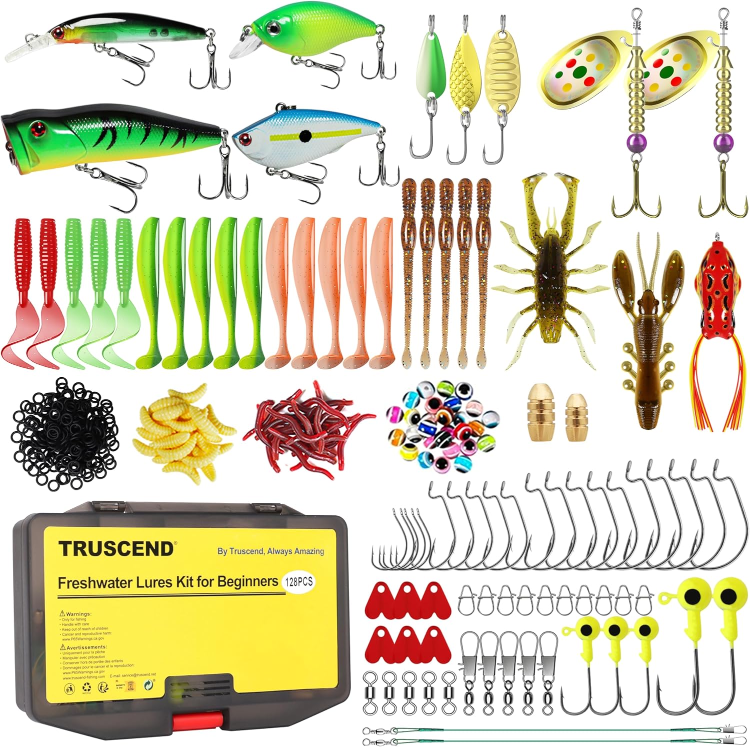 TRUSCEND Widely Used Fishing Tackle & Accessories Kit, Fishing Tackle Box with Tackle Included, Fishing Sinker Weight Hook Swivels Snap Leader Lures, Giftable Beginner Fishing Lures/Gear Set