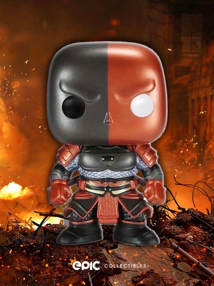 This limited edition Imperial Palace Deathstroke vinyl figure combines one of DC's most popular characters with a costume and battle armor drawn from 5,000 years of Chinese history. This Limited Edition Metallic Variant that was only made available in Shanghai 2021 Asia Convention. Extremely rare to find here in the US. Vinyl figure is approximately 4-inches tall. This Pop comes with original packaging and will be bundled with an Epic Collectibles premium protector.