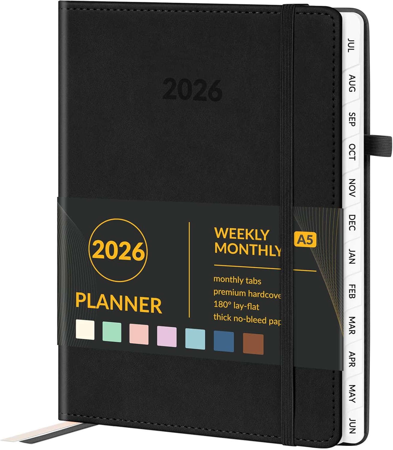 Forvencer 2026 Planner, Weekly Monthly Planners with Month Tabs, 12 Months (Jan 2026 - Dec 2026), A5(5.8"×8.3"), Daily Academic Calendar with Elastic Band, Small Hardcover Agenda, for Teacher, School