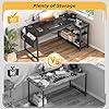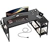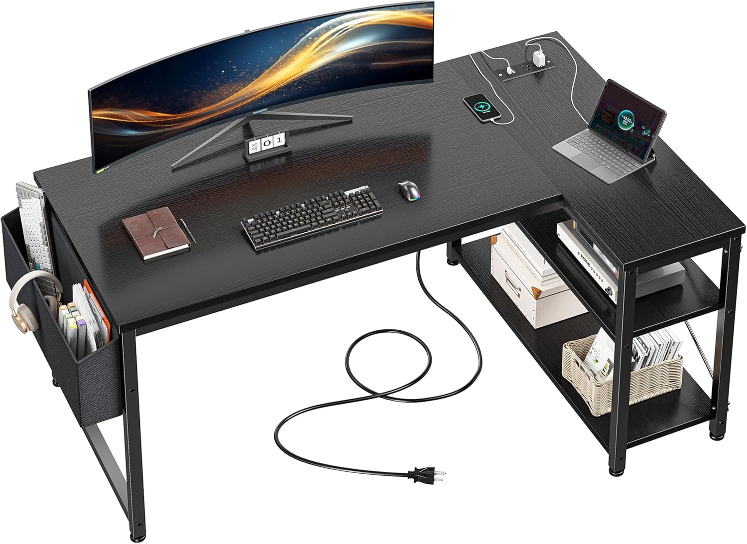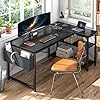 EnHomee 48 Inch L Shaped Computer Desk with Storage Shelves & Side Bag, Office Desk with Power Outlets, Small Corner Desk for Gaming Working Small Space Home Office Bedroom, Study Writing Table, Black