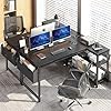 【Desk with USB Charging Ports & Power Outlets】The Computer desk is engineered for modern tech needs, this computer deskin tegrates 2 AC outlets and 2 ports. Effortlessly power your PC rig, console, mobile devices, and peripherals simultaneously. Its more humanized design of outlets can also avoid the cable mess in multi-device charging.