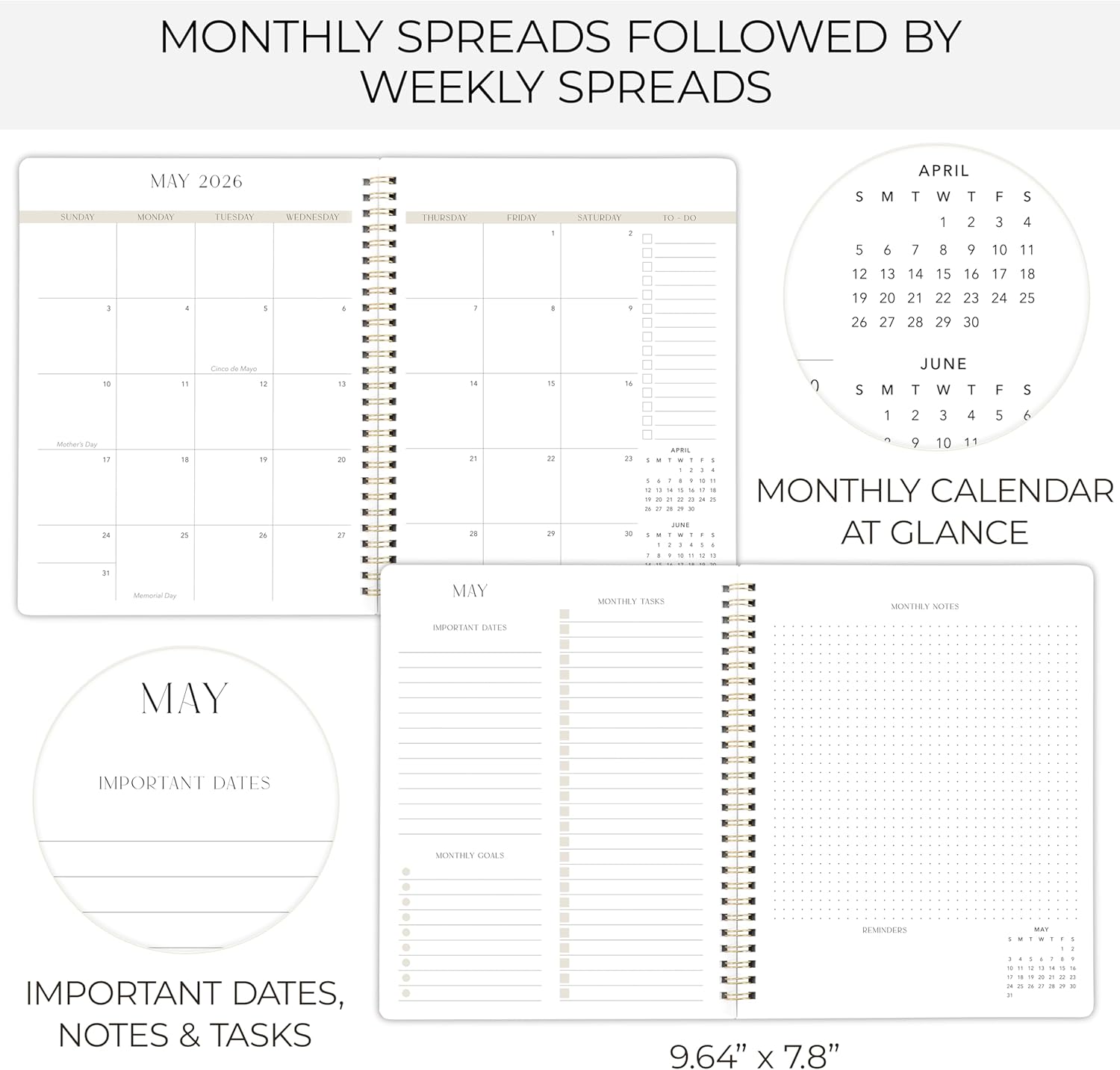Increase Your Productivity & Achieve Your Monthly Goals: What a life-changing hack to boost your productivity & transform each month into an organizational masterpiece! Plan your to do’s, monthly goals & tasks and write down all important dates so you never forget about deadlines or events; there is also plenty of space for personal notes & (motivational) reminders