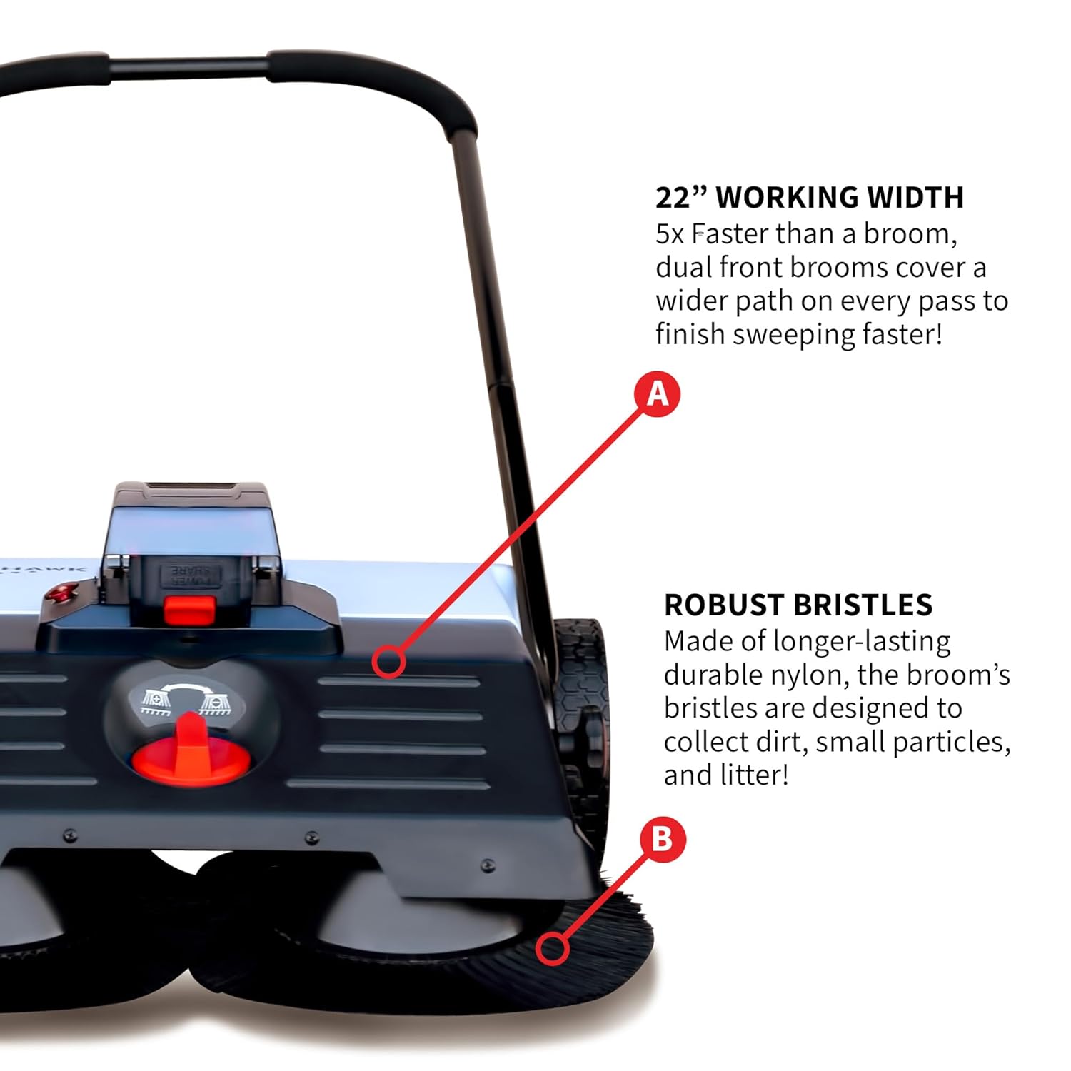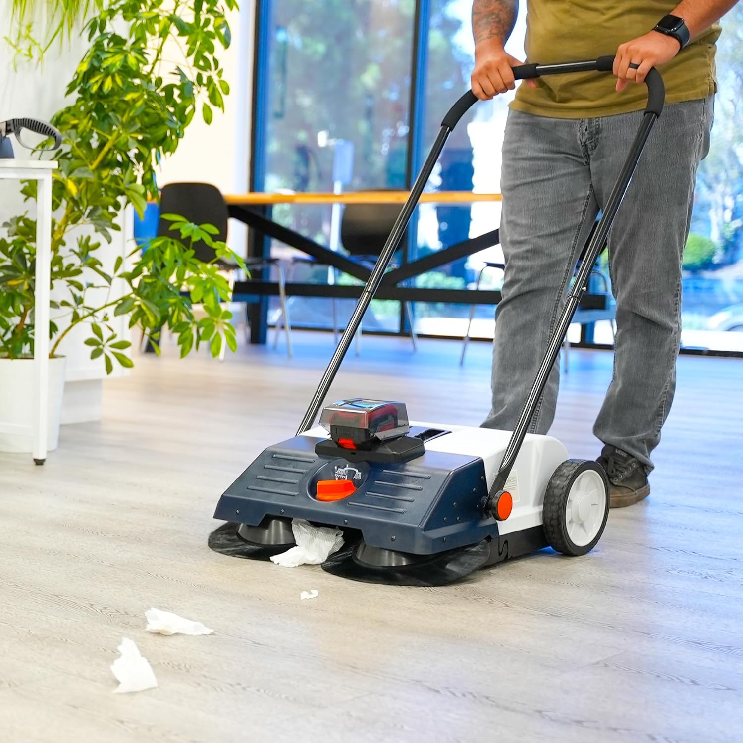 22" Battery Powered Push Sweeper with Double Brush System 18V Lithium-Ion