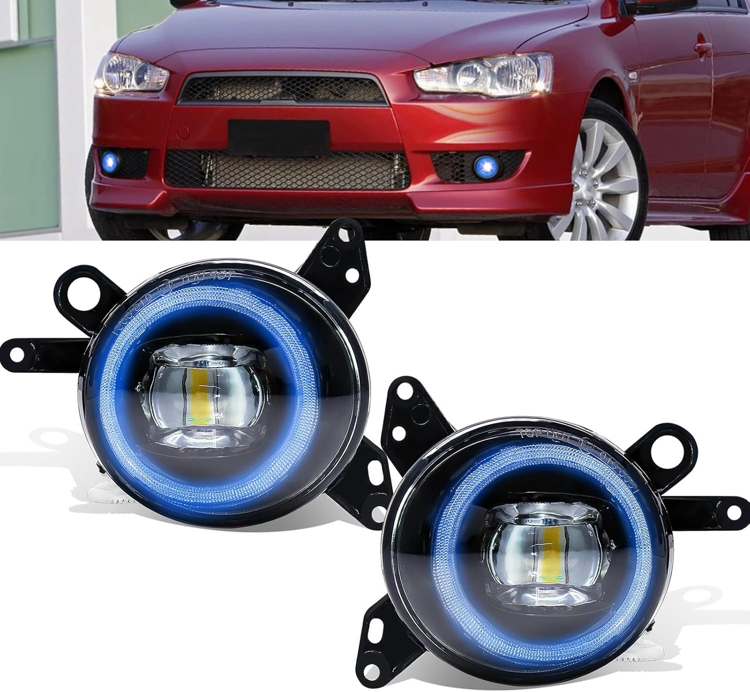 Angel Eye Fog Light For Mitsubishi Lancer 2008-2014 Front Bumper White LED Lamps with Blue Ring 1 Pair