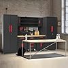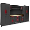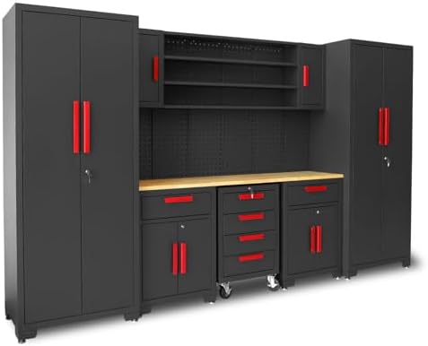 Torin Garage Storage Cabinets System, 8-Pcs Workshop Cabinet Set in Black, Included Steel Cabinets Drawers Rolling Chest and Pegboard,Locked Garage Storage Cabinet