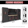 The size of garage storage cabinet set are 130"L x19"Dx 76"H inches. Locker x2, Wall cabinet x2, 1-drawer roller cabinet x2, 4-drawer roller cabinet x1, 71 in workbench x1, Pegboard x10, Shelf to connect the wall cabinets x4. For stability, high cabinet s can optionally be fixed to the wall. Overall weight capability : Locker 820 lbs., Wall cabinet 50 lbs., 1-drawer roller cabinet 620 lbs., 4-drawer roller cabinet 380 lbs., 52in workbench 800 lbs. The locker can also be used with a pegboard for hanging a variety of small items and tools. Its versatile metal pegboard adapts to different sizes and specifications of hooks, organizers and accessories to organize tools and clutter in garages, sheds, workshops and more. The pegboards feature a durable powder-coated finish that prevents rusting and cracking. The metal pegboard is stronger and more durable than traditional pegboards. Overall, this storage cabinet features sturdy construction, strong weight capacity, easy to move and assemble. It can meet the storage needs of different occasions and is suitable for garages, offices, factories, warehouses and other places. Meanwhile, its details are well handled, such as the use of high-quality materials, coating treatment, adjustable design, and so on. Whether you need a cabinets for easy mobility, a closet for storing tools or a cabinet for storing office files, this storage cabinet can meet your needs.