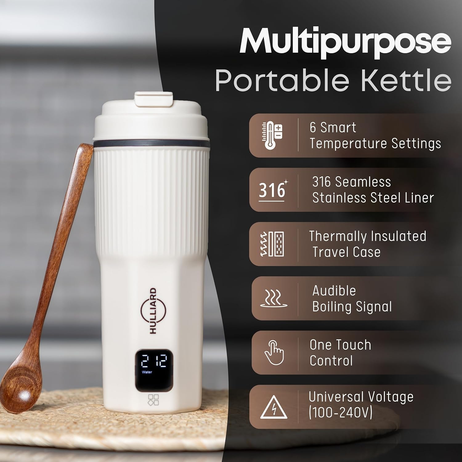 Travel Electric Kettle - 316 Stainless Steel, Portable Tea Kettle & Water Heater, 450ml Portable Water Boiler, 6 Temperature Settings, Auto Shut-Off, Universal Voltage (100-240V)