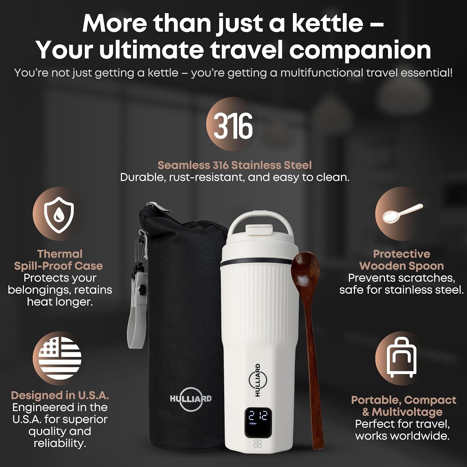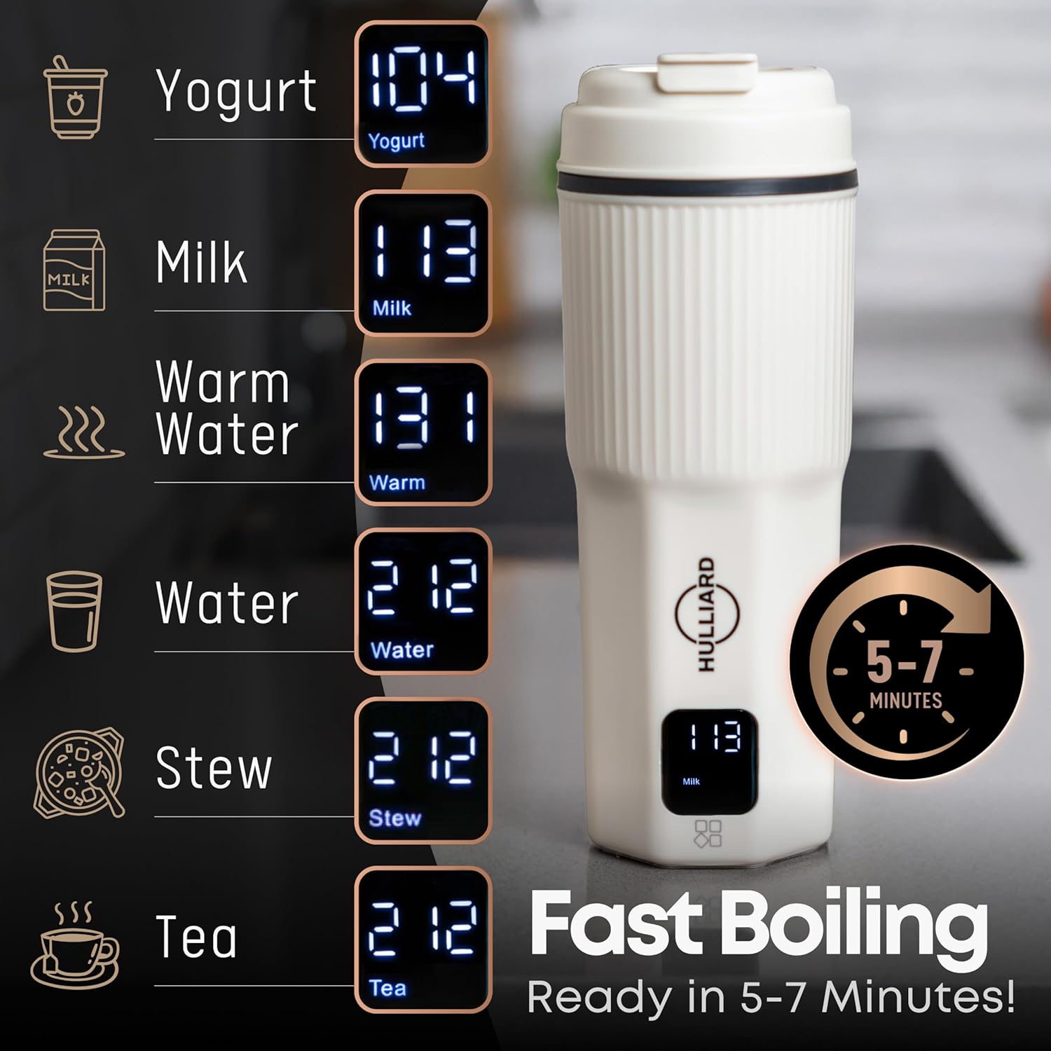 Portable Tea Kettle & Water Boiler – Smart Temperature Control choose from 6 temperature presets (113°F–212°F) with a real-time LCD display. Perfect for brewing tea, coffee, yogurt, slow-cooked stews. Ideal as a travel kettle, portable bottle warmer or mini heater for warming milk or baby formula