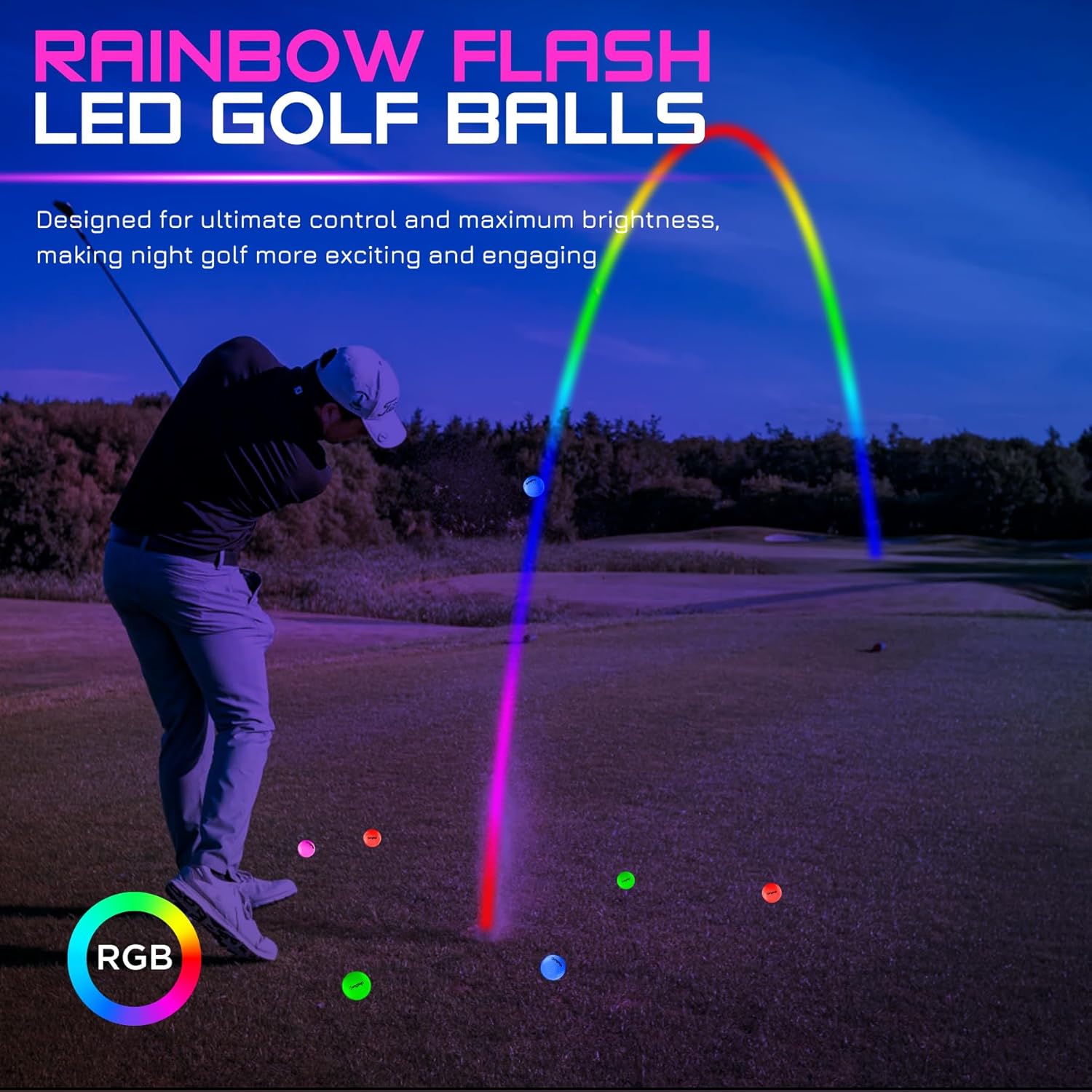 7-Color Flashing Modes: Each KINGTOP Rainbow Flash LED golf ball cycles through 7 vibrant colors, creating a stunning, fun visual effect as it flies through the night sky.