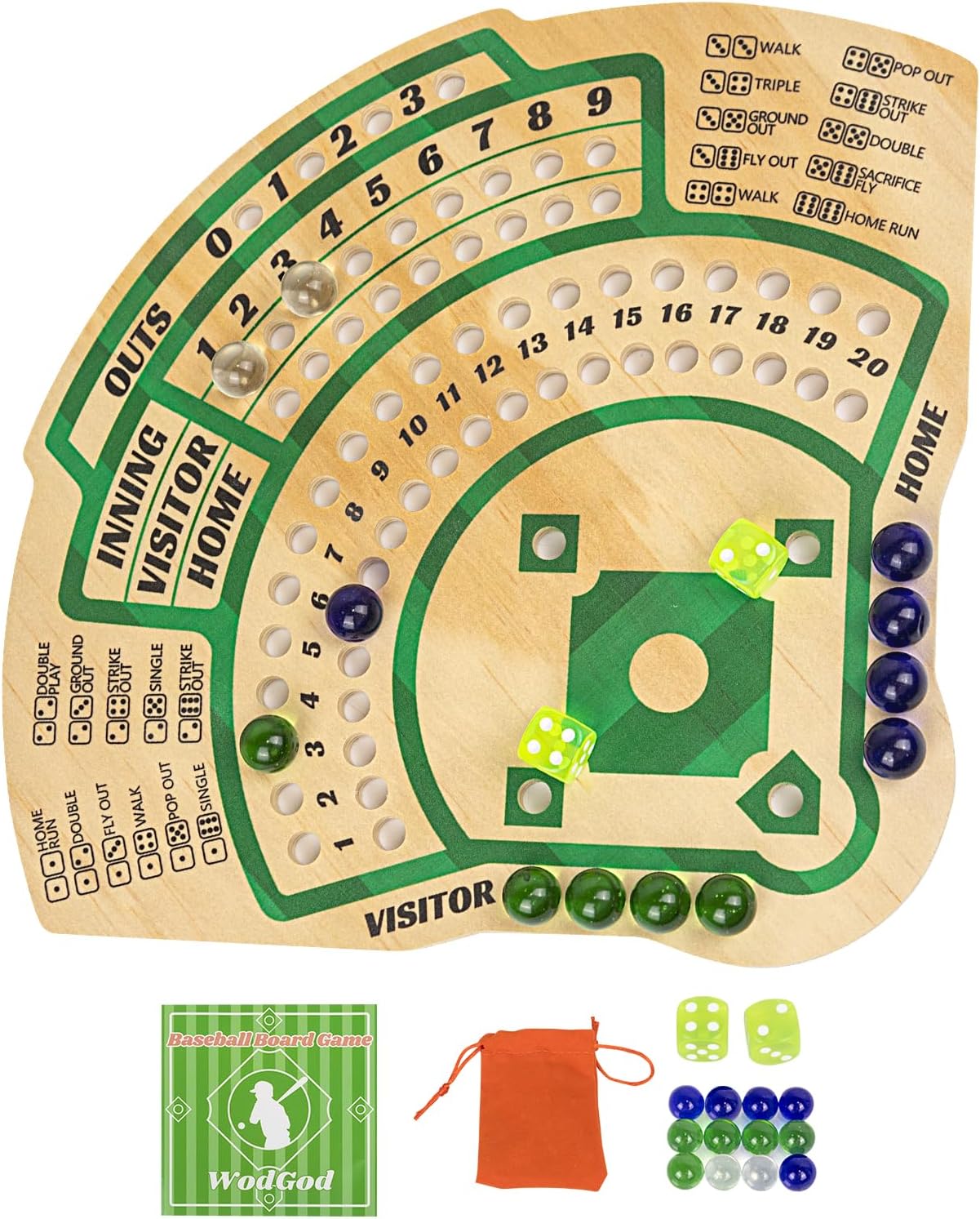 Baseball Board Game,Baseball Dice Board Game,Solid Wood,12 Colourful Beads and Dice,Manual Included,Portable,Perfect for Home Party,Family Night and Road Trip (Sector)