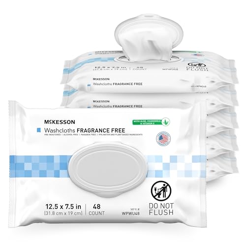 McKesson Washcloth Wipes for Adults, Unscented (6 Pack, 288 Washcloths) Disposable Wash Cloths for Body - Fragrance-Free No-Rinse Formula - Good for Incontinence and Elderly - 48 Wipes Per Pack