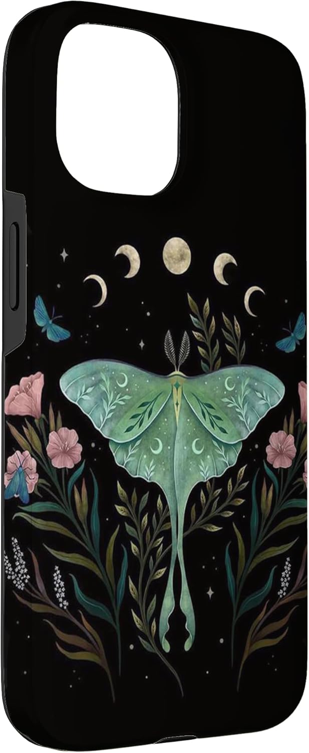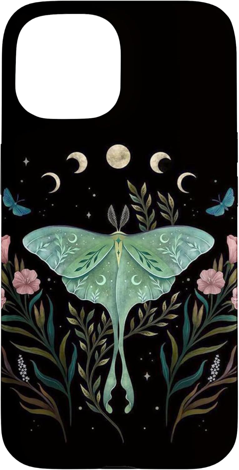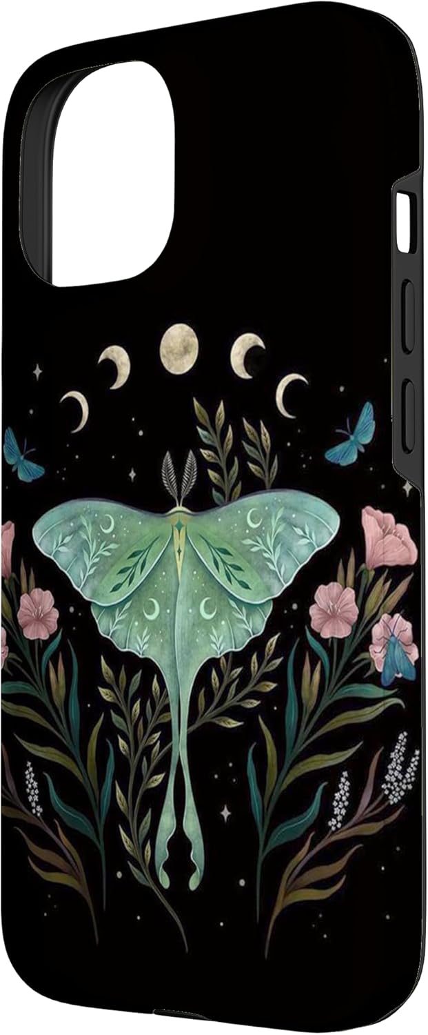 iPhone 15 Aesthetic Witchy Luna Moth Flower Floral Moon Phases Case