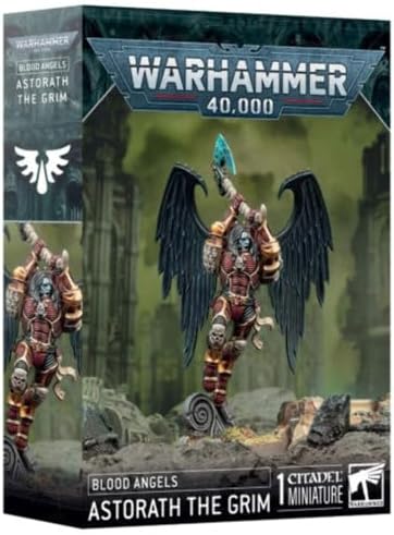Warhammer 40K: Blood Angels: Astorath el Sombrío: Este kit de plástico de varias piezas construye a Astorath el Sombrío, un líder cuyo único propósito es lanzarse a los combates cuerpo a cuerpo más intensos junto a sus hermanos que han sucumbido a la Rabia Negra. Sin empuñar armas de largo alcance en absoluto, y equipado con un jet pack, avanza con furia ciega, cosechando un alto precio con su instantáneamente reconocible Hacha del Verdugo, resplandeciente en su armadura de aspecto de piel flayed – él es la misma visión de los Ángeles de Sangre en su estado más salvaje. Este kit contiene 17 componentes de plástico y 1x Base Redonda Citadel de 40mm. Esta miniatura se suministra sin ensamblar y sin pintar