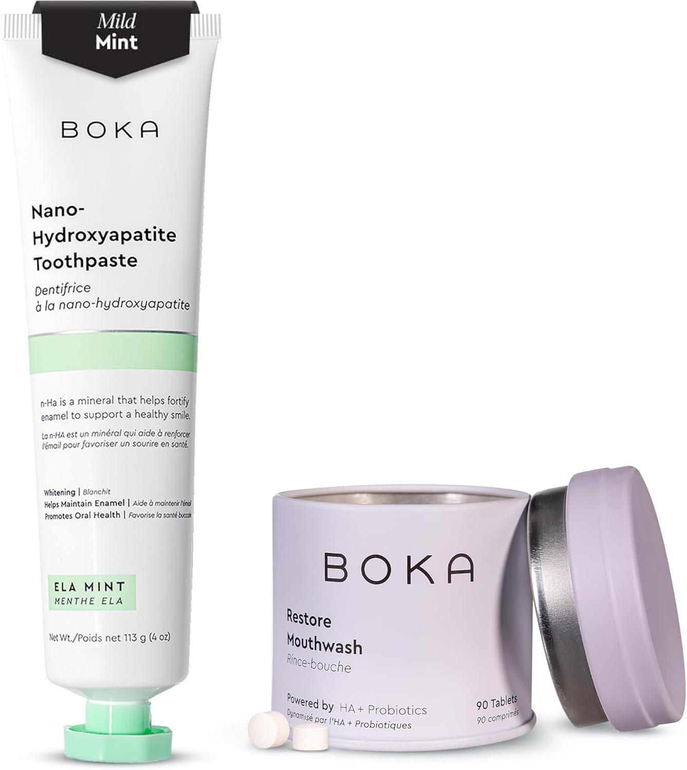 Boka Fluoride Free Toothpaste - Nano Hydroxyapatite - Ela Mint 4oz and Travel Size Mouthwash Tablets - Hydroxyapatite, Fluoride/Alcohol Free & Eco-Friendly