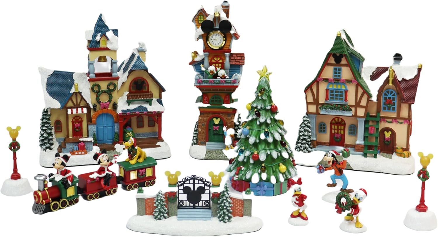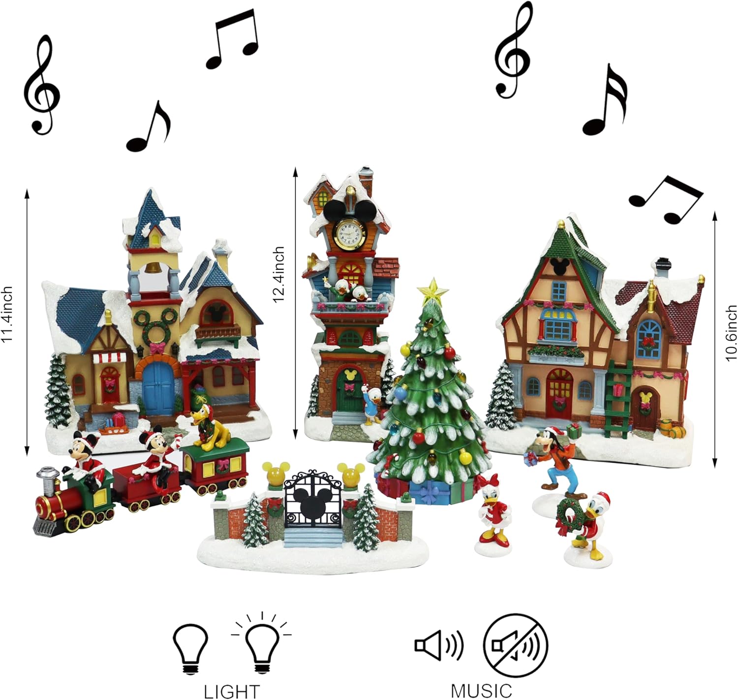 MOMENTS IN TIME 13 Pieces Disney Characters and Christmas Buildings with Music and LED Lights with Timer.
