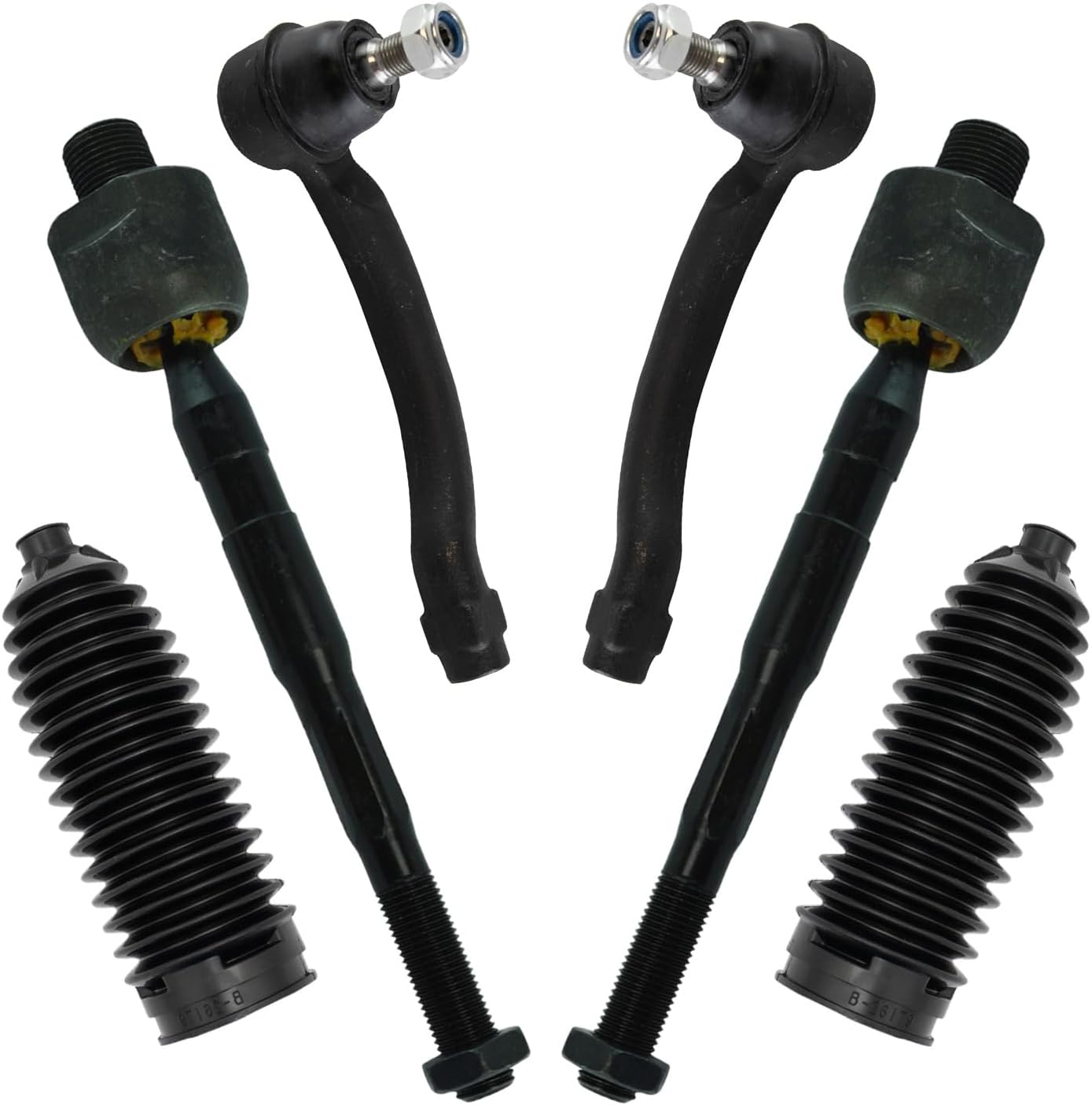 6 Piece Steering KitKit Includes(2) Front Inner Tie Rods(2) Front Outer Tie Rods(2) Front Steering Rack & Pinion BellowsFitmentCompatible with: 2009-15 Honda Pilot FrontProduct AttributesQuantity: 6 PieceProduct Features Application Specific Design: No modifications necessary Anti-Corrosion Coated: Enhanced surface life Pre-greased: No additional maintenance required Kitted for Restored Performance: Improved road-feel and handlingItem DetailsTRQ suspension kits are manufactured using premium raw materials and coatings for extended service life. Each TRQ suspension component is designed to be a direct, maintenance-free replacement to the stock unit. To extend the life of your steering and suspension components, TRQ recommends replacing components in pairs, sets, or kits. All products are fit and road-tested in our Massachusetts R&D facility to ensure we deliver on our promise of Trusted Reliable Quality.Reference Numbers103-3069103-3070455350603048203EA02553010SZAA0153534SZAA0253540STXA0253560STXA025846388-1632-KBT-743HES800824ES800825EV800712K150272MS60621MS60622MS60720NRKB-R51SUS07204SUS07991SUS07992SUS08016