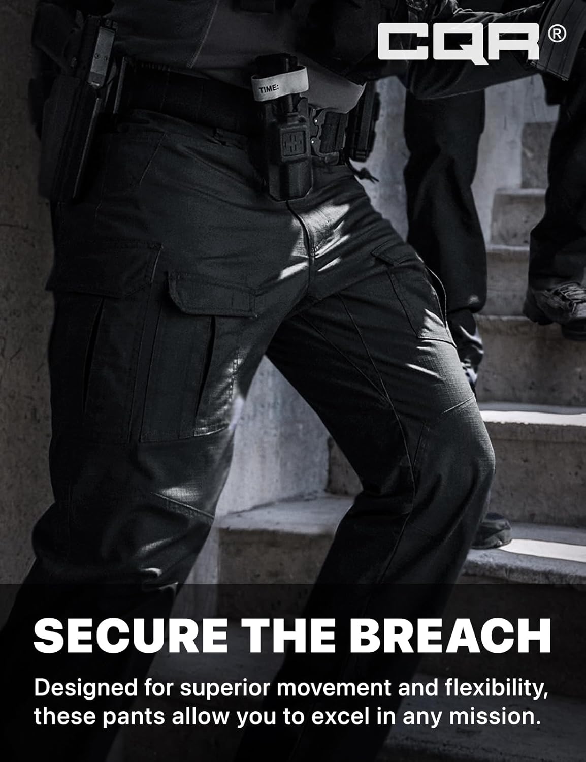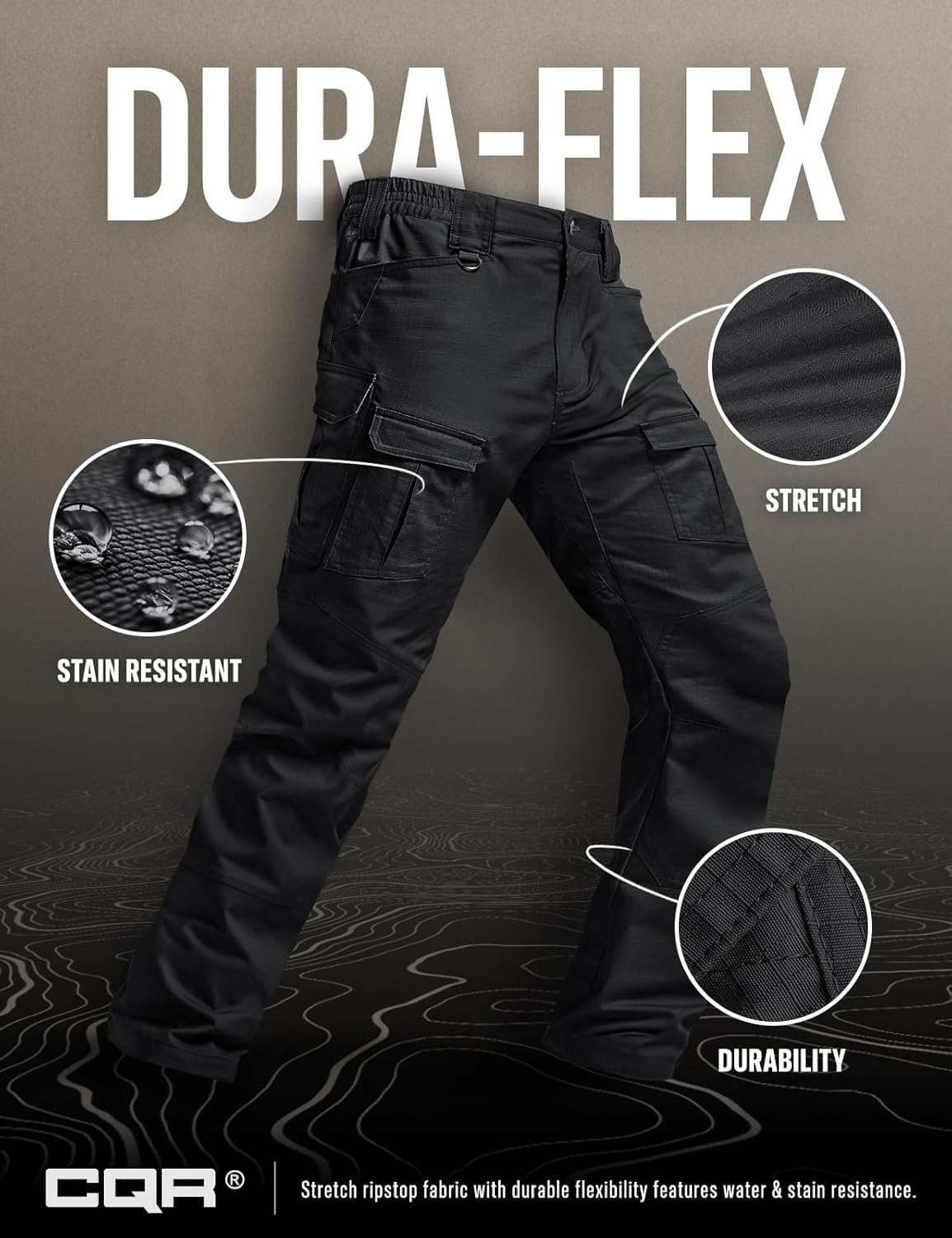 CQR Men's Flex Ripstop Tactical Pants, Water Resistant Stretch Cargo Pants, Lightweight EDC Hiking Work Pants