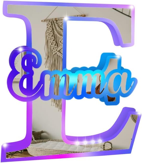Personalized Name Mirror Light- Different from ordinary Light, this custom letter mirror lamp allows you to personalized your name or any text on the mirror surface. The charm LED light and cool mirror surface make it more romantic and beautiful for your room decor