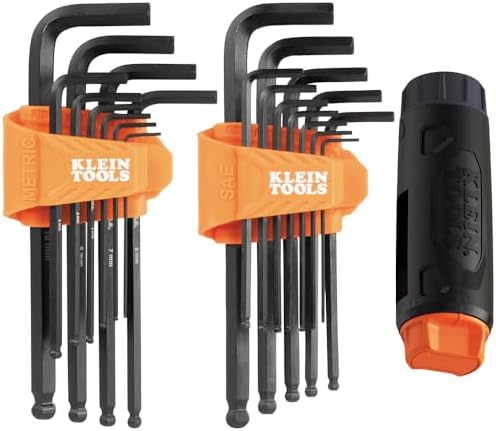 Klein Tools' 22-Key Ball End Hex Key Set conveniently consolidates the most popular metric and SAE sizes into one convenient set. The flexible folding case ensures easy access to keys while providing sleek and adaptable storage options when interlocking SAE and metric cases together. Each key is heat-treated and coated in black phosphate for unparalleled strength and corrosion resistance. For more than 160 years, Klein Tools has manufactured premium-quality, professional-grade hand tools that deliver the performance, durability and precision needed to get the job done right. Our family of engineers, workers and craftsman continue to put six generations of expertise into every tool we create by using only the highest quality materials, superior workmanship, and keeping manufacturing as close to home as we can. Klein isn't just the name of our company, it's also our family name. And since we're an American company that's family-owned and family-run, you know you can count on us to be here tomorrow. Klein Tools doesn't just make great products, we make great products that stand up to the demands of the professionals who use them every day ... Since 1857.