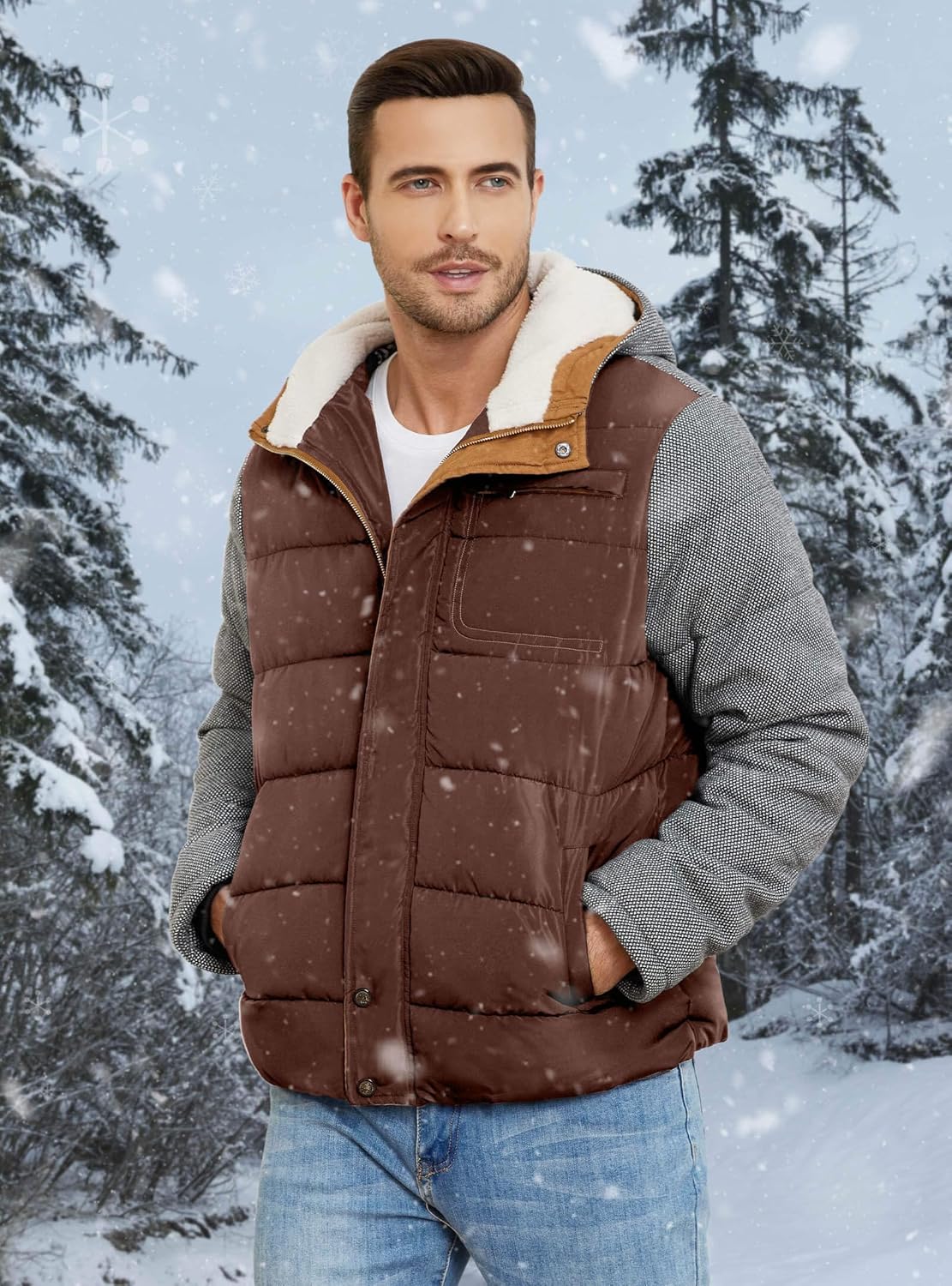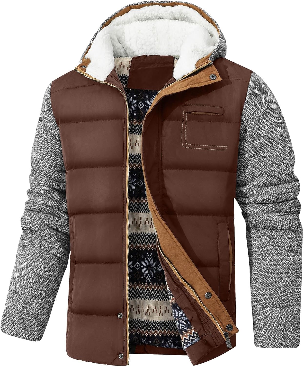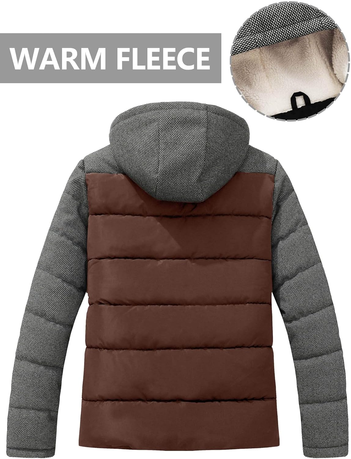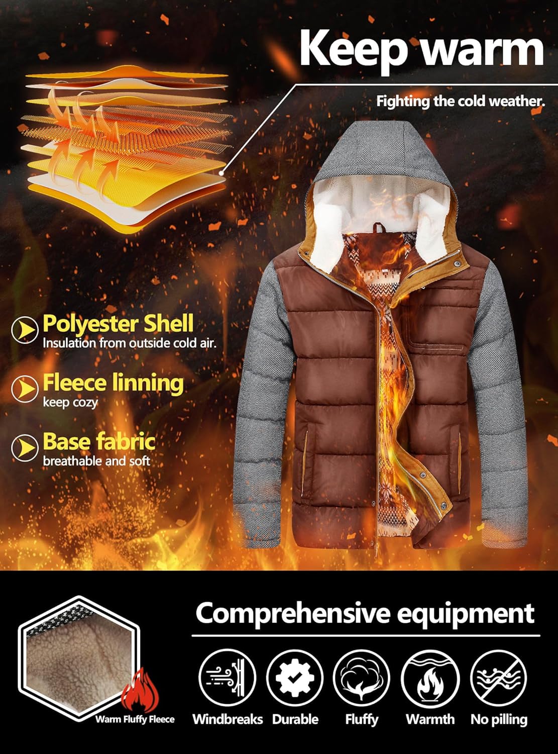HYPESTFIT Mens Winter Jacket Puffer Fleece Lining Warm Windproof Thicken Ski Parka Coat