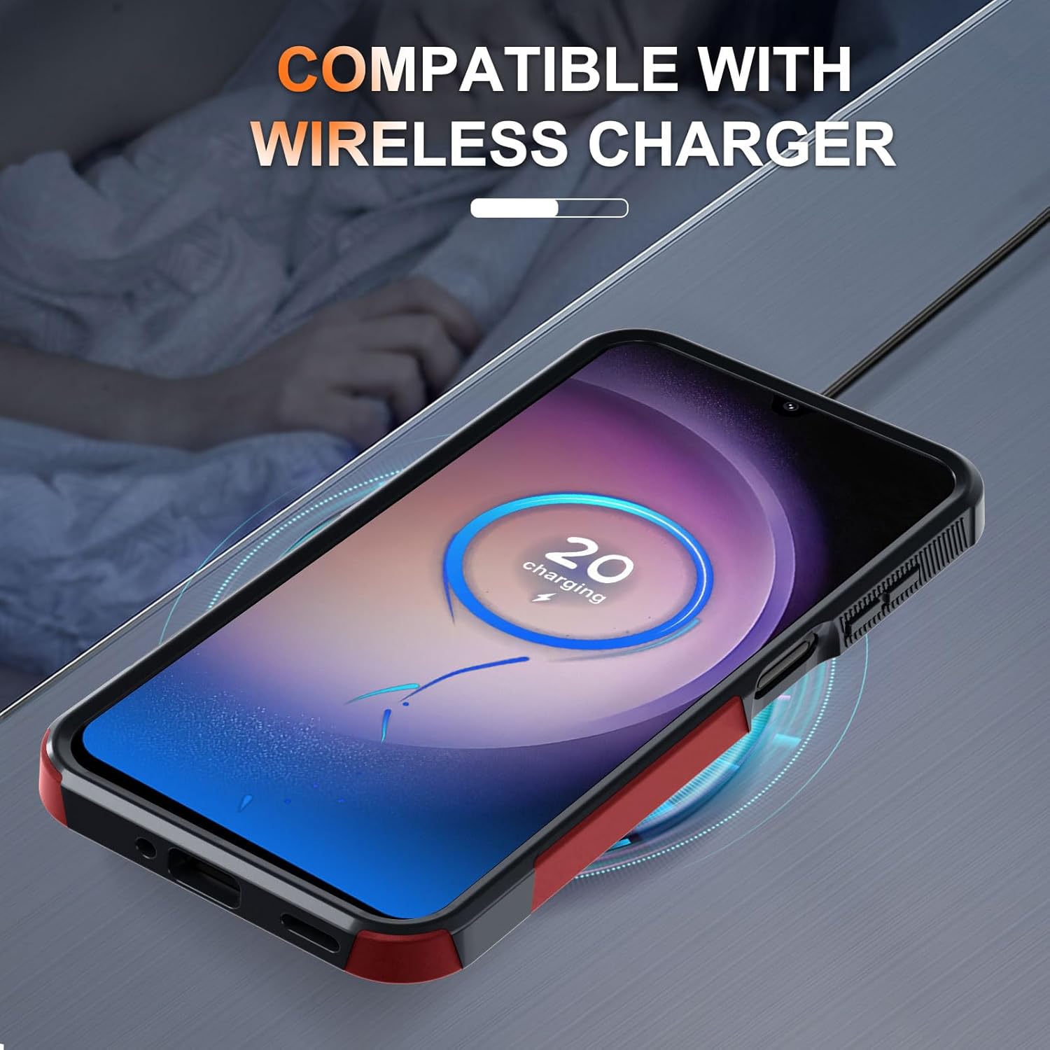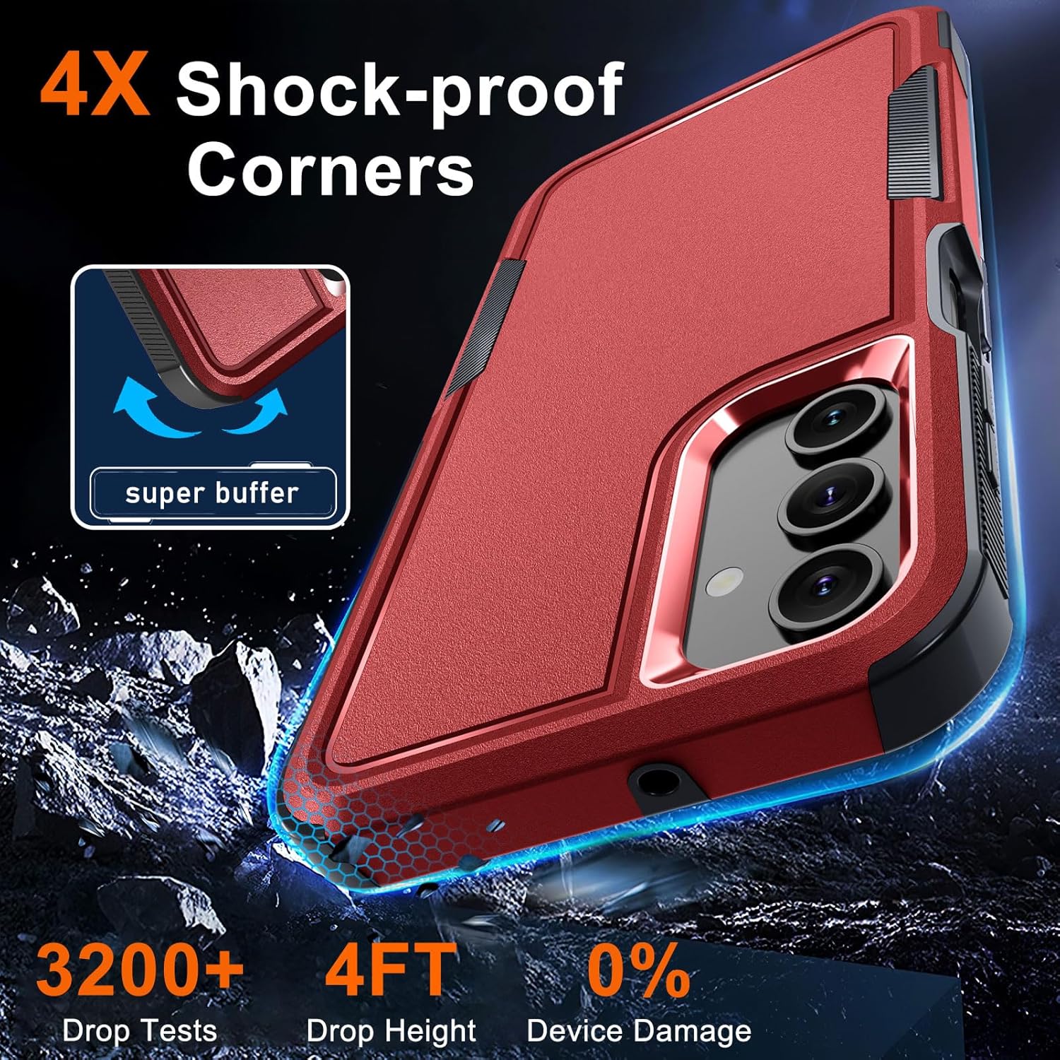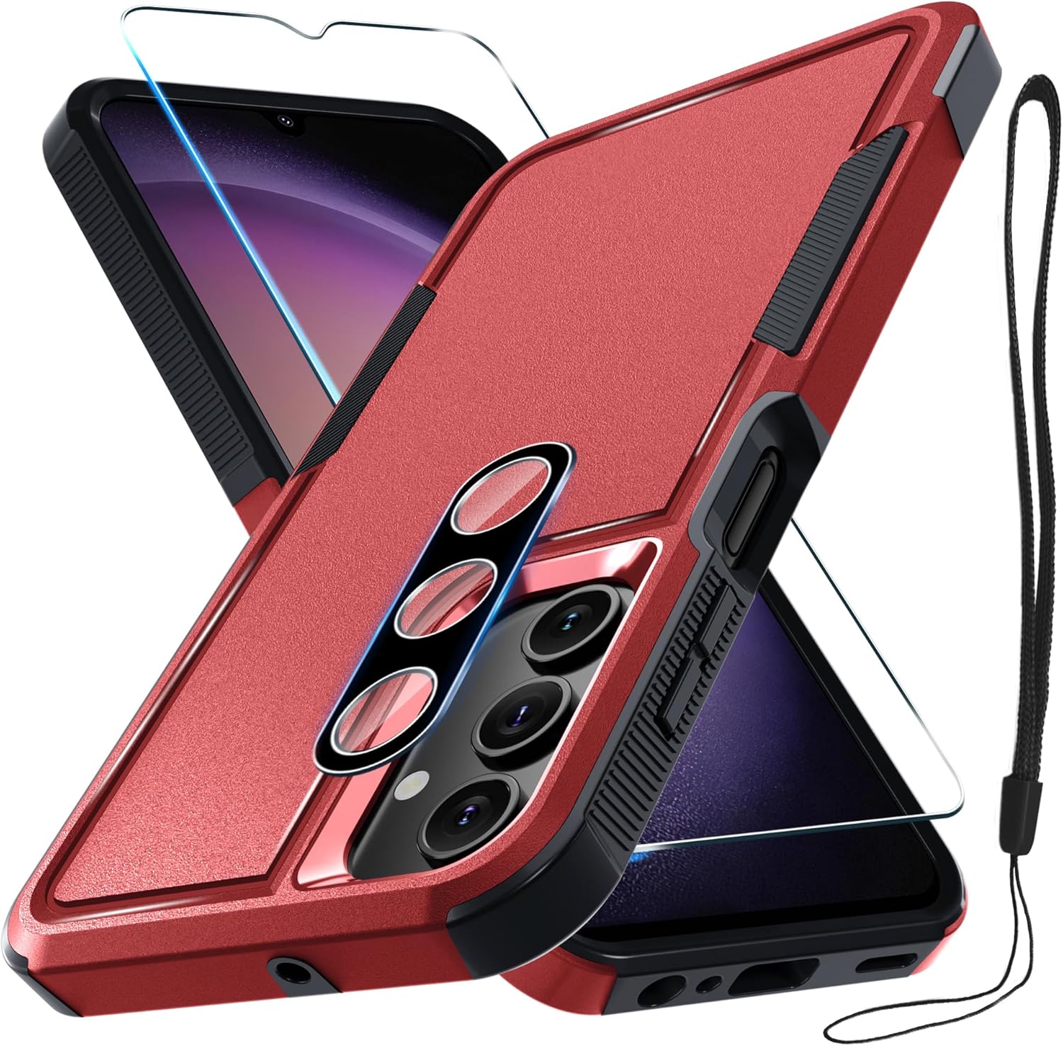 RMOCR Case for Samsung Galaxy A16 5G, Full Body Heavy Duty Rugged Shockproof Protective Phone Cover with Lanyard Strap, Tempered Glass Screen Protector and Camera Lens Cover, Red