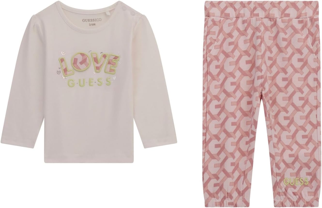 GUESS baby-girls Eco Long Sleeve T-shirt and Brushed Terry Pant Set