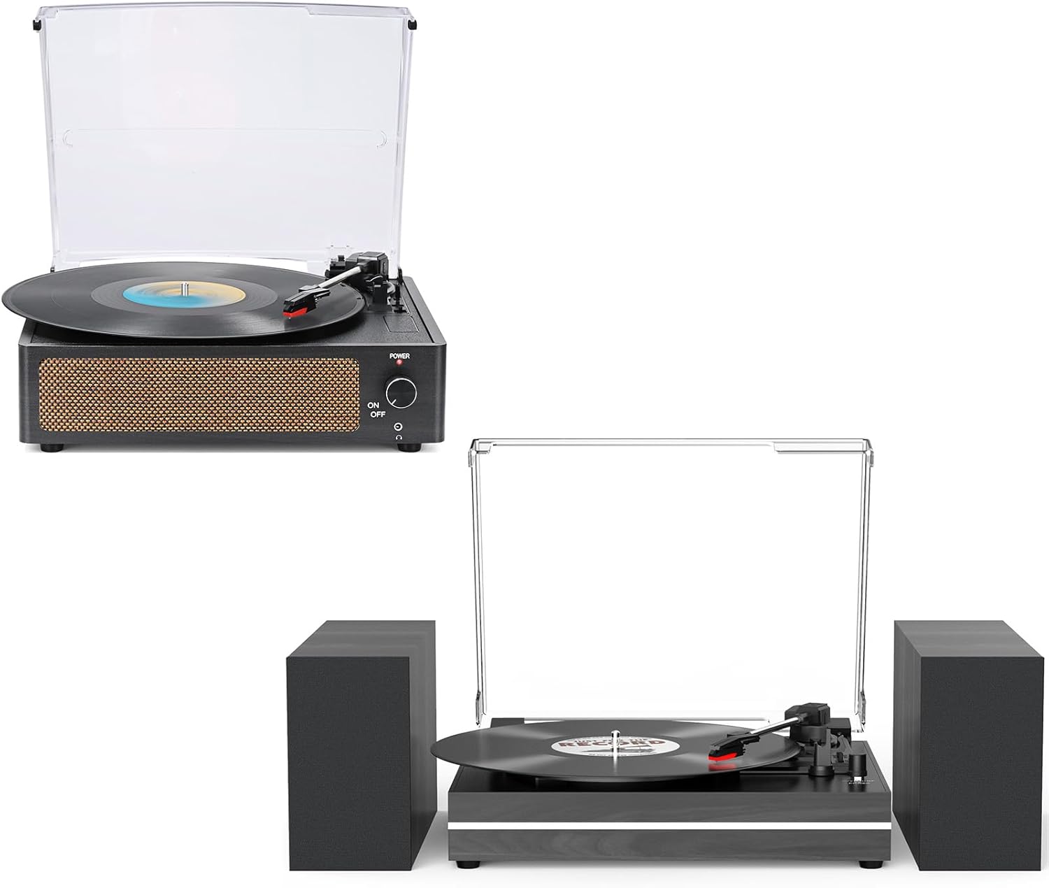 Record Player Built-in Two Speakers and Record Player with Two External Speakers Black