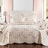 mixinni Floral Embroidered Quilt Set - 3 Pieces Reversible Quilt Bedding Set, Cotton Blend Quilt Queen Size Set Elegant Embroidery Bedspread Coverlet Set with 2 Pillow Shams for All Seasons (90"x98")