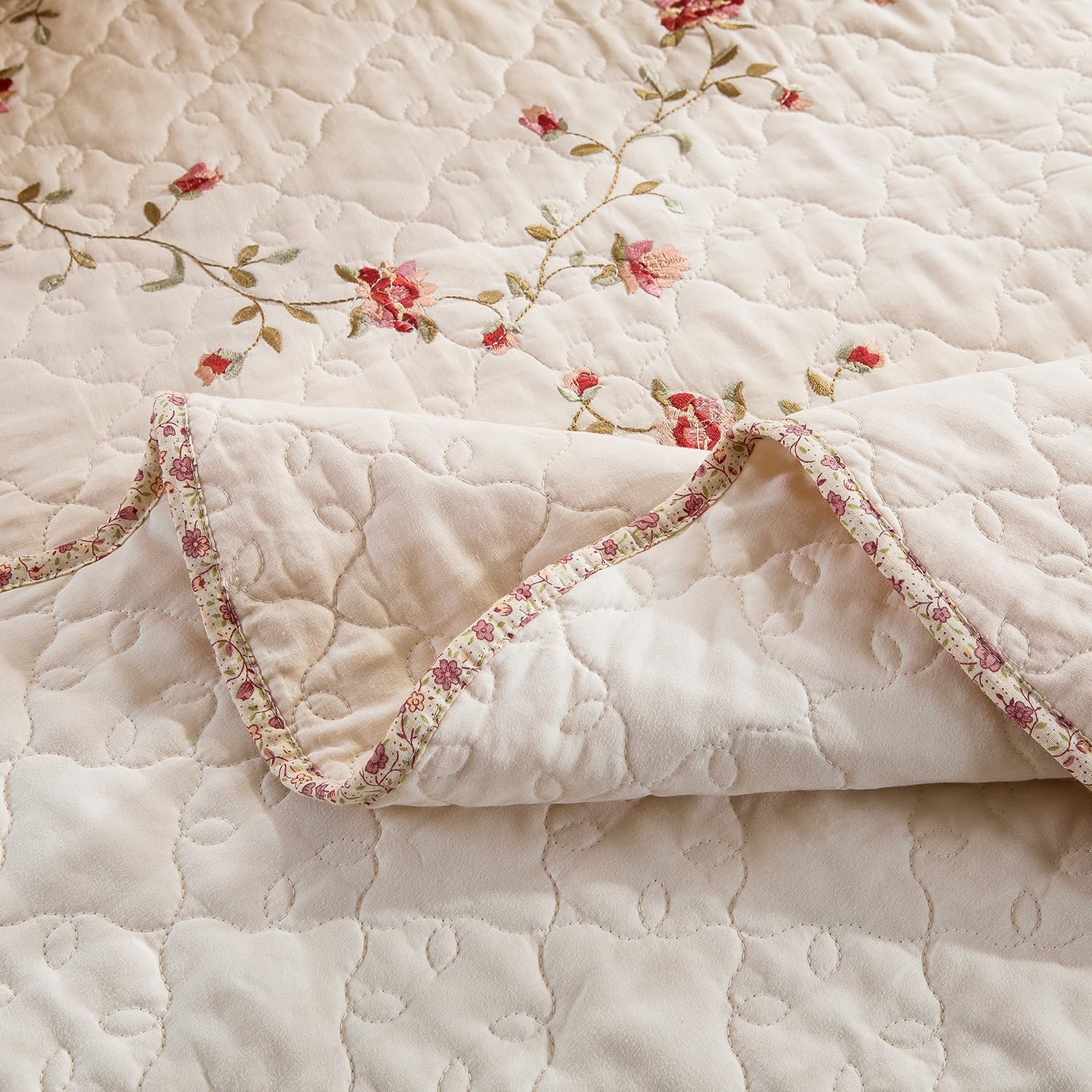 ★【Soft& Lightweight 】-- Soft premium cotton embroidery quilt bedding set for the most relaxing sleep anf relieves stress.comfort touch and ultra-breathable fabric that keeps your body comfortable, feels like sleeping on a cloud. This quilt is tightly stitched with decorative patterns, which not only adds aesthetics but also practicality, and there is stitching on each floral edge to protect the filling inside, making it suitable for all year around use.