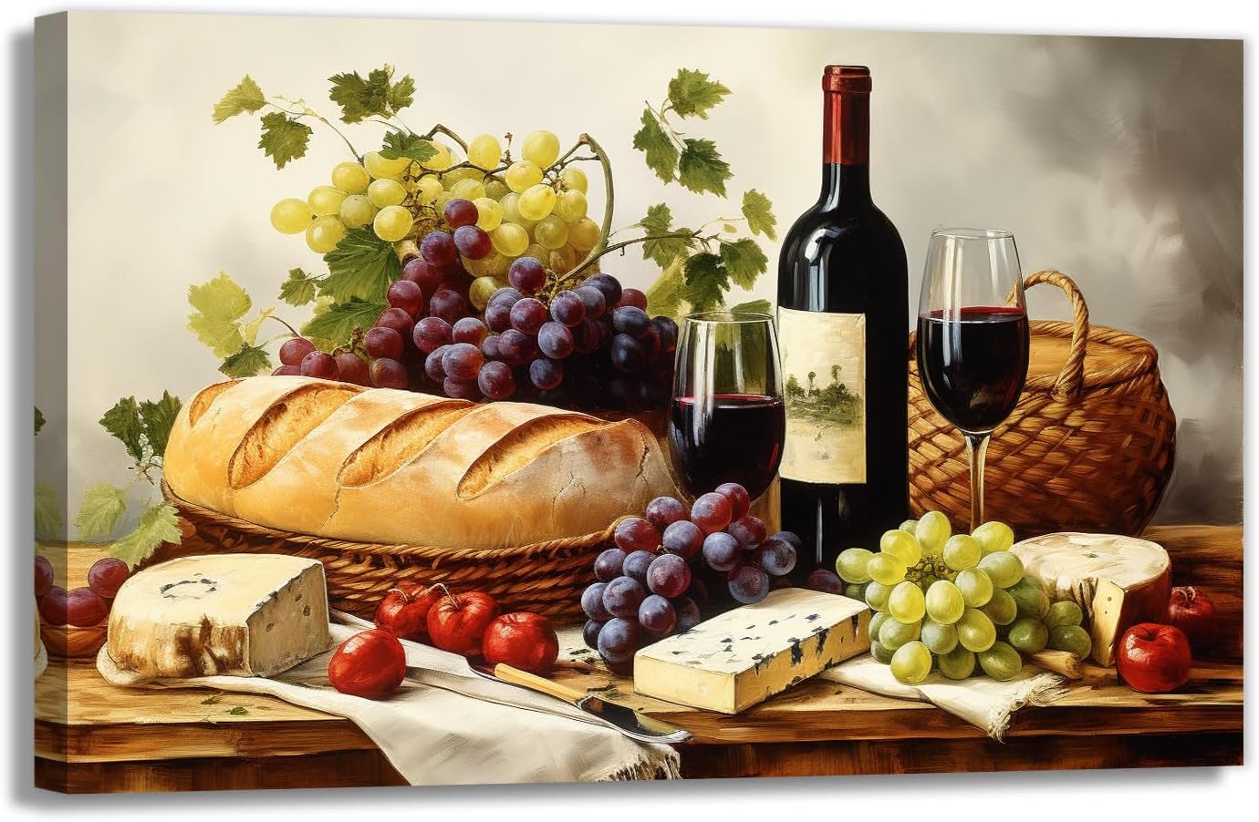 Delicious Food Art: This abstract fruit food painting depicts fresh wine and bread, adding a touch of warmth and deliciousness to your restaurant and making the dining experience more enjoyable